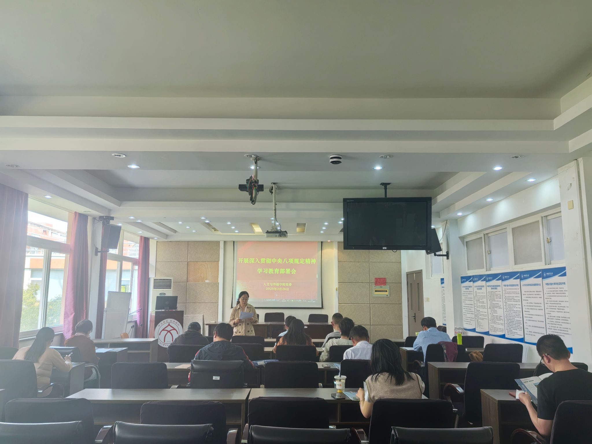 3月24日下午,人文与外语学院召开党委扩大会议,部署深入贯彻中央八项规定精神学习教育工作。3月26日下午,人文与外语学院召开党支部书记例会,进一步传达学习习近平总书记关于深入贯彻中央八项规定精神学习教育的重要讲话和重要指示精神,以及省委、省委教育工委部署会议有关要求,全面启动开展深入贯彻中央八项规定精神学习教育。学院党委书记赵蓓茁主持会议并讲话,学院党委委员、党支部书记参加会议。