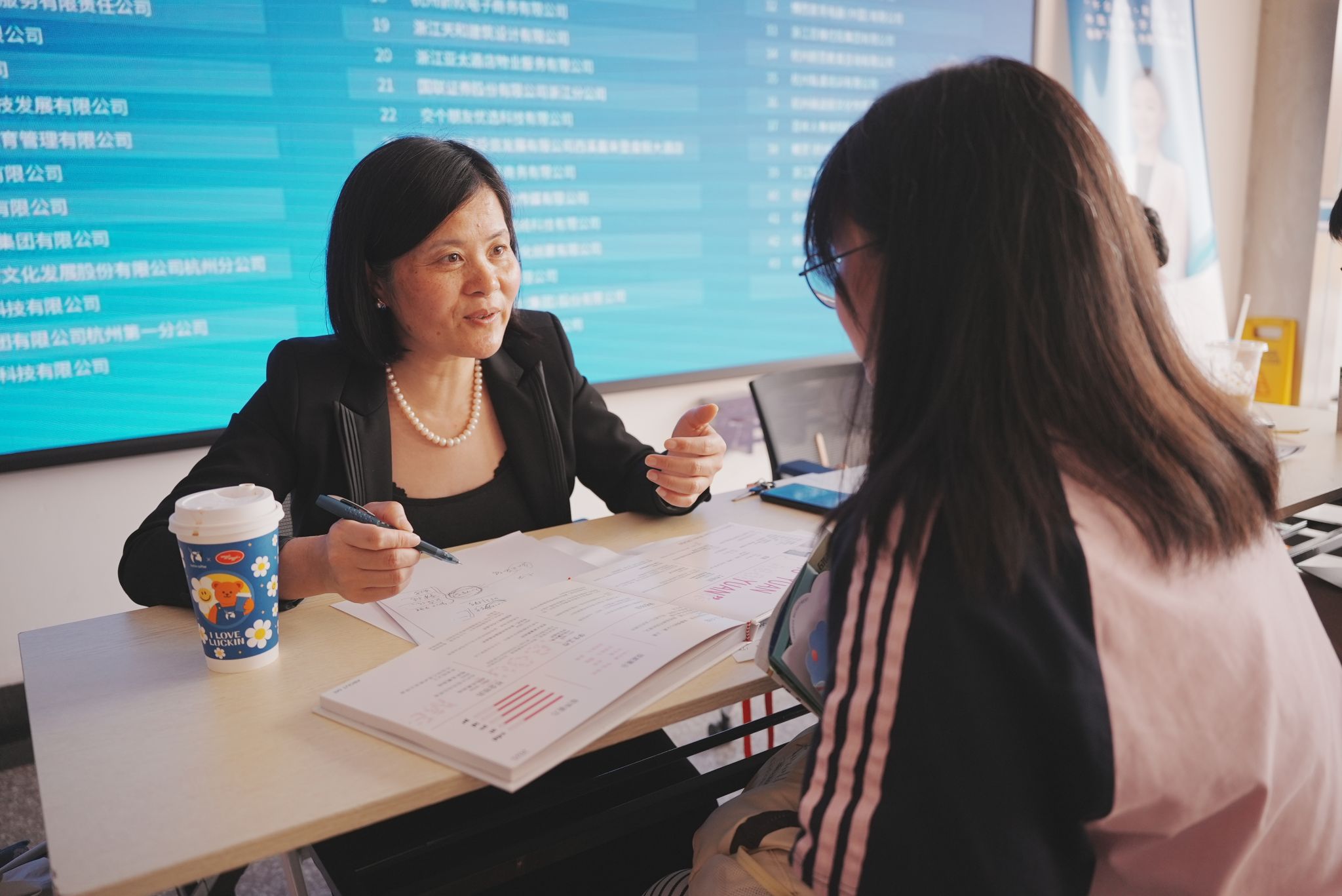 招聘会汇聚了省内外多家对口企业,包括杭州先艺品牌管理有限公司,成都心田花开心语教育管理有限公司,山河吟科技(上海)有限公司等。企业提供的岗位覆盖平面设计、新媒体编辑、品牌策划、国际商务、教育培训等方向,充分匹配人文、设计、传播类毕业生的专业特长与职业发展需求。部分企业还设置了实习岗位,吸引了许多2026届学生提前了解行业动态,积累实践经验。毕业生手持简历与企业招聘负责人深入交流,详细了解岗位职责、晋升通道及企业文化。企业招聘负责人对中国计量大学学生的专业能力、实践素养和沟通能力给予高度认可,多家企业表示希望建立长期合作,共同探索校企联合培养新模式。