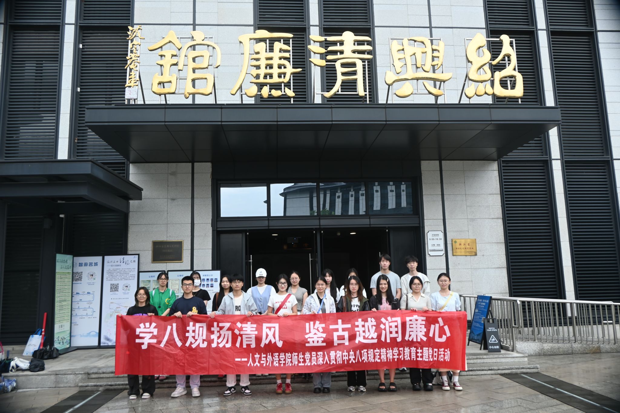 为深入学习贯彻中央八项规定精神学习教育,深化党风廉政教育,筑牢党员廉洁自律思想防线,人文与外语学院公共管理类专业学生党支部联合研究生第一党支部于5月16日组织全体党员赴绍兴清廉馆开展“学八规扬清风 鉴古越润廉心”主题党日活动,通过沉浸式学习古越廉韵与新时代从严治党要求,推动廉洁文化入脑入心。