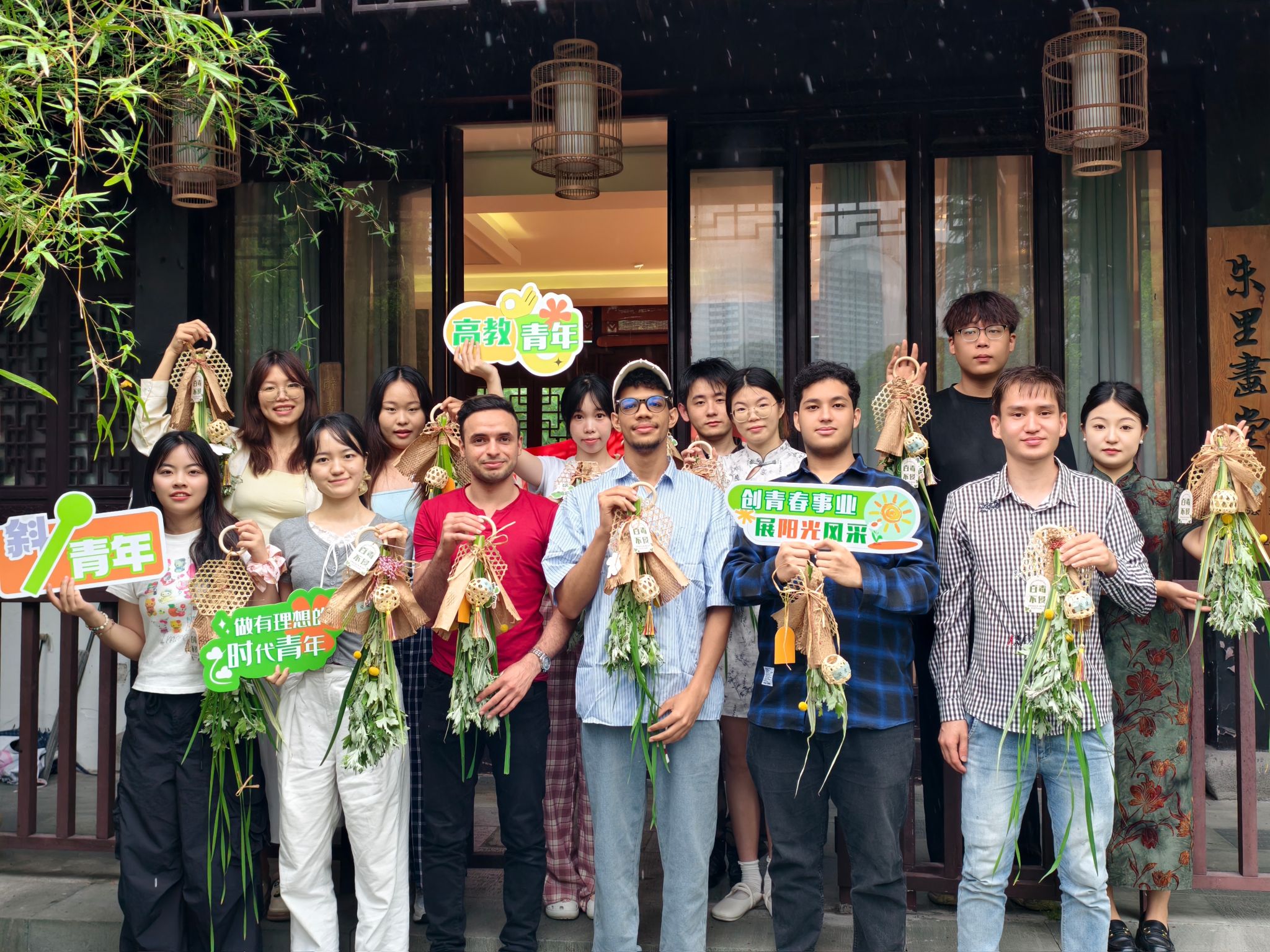 活动尾声,中外学生手提艾草门挂合影。无论是中国学生还是留学生,都纷纷表示收获颇丰。中国学生感慨道,通过与留学生的交流互动,自己对传统文化有了新的感悟,也更加坚定了传承和弘扬中华优秀传统文化的决心。留学生们则兴奋地表示,这次活动让他们亲身感受到了中国传统文化的独特魅力,增进了对中国传统节日的理解,也加深了与中国同学之间的友谊。