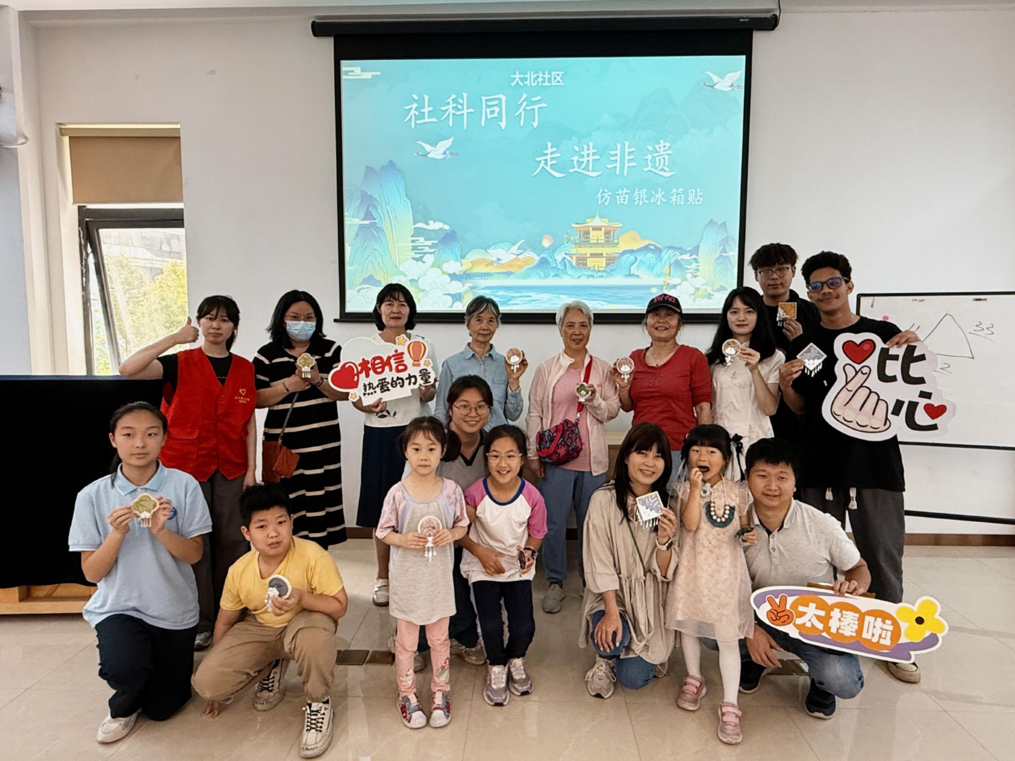 在中外学生与社区老年人的共同努力下,一个个精美的仿苗银冰箱贴逐渐成型。这些冰箱贴不仅展现了非遗文化的独特魅力,更凝聚了中外学生与社区居民之间的深厚情谊。