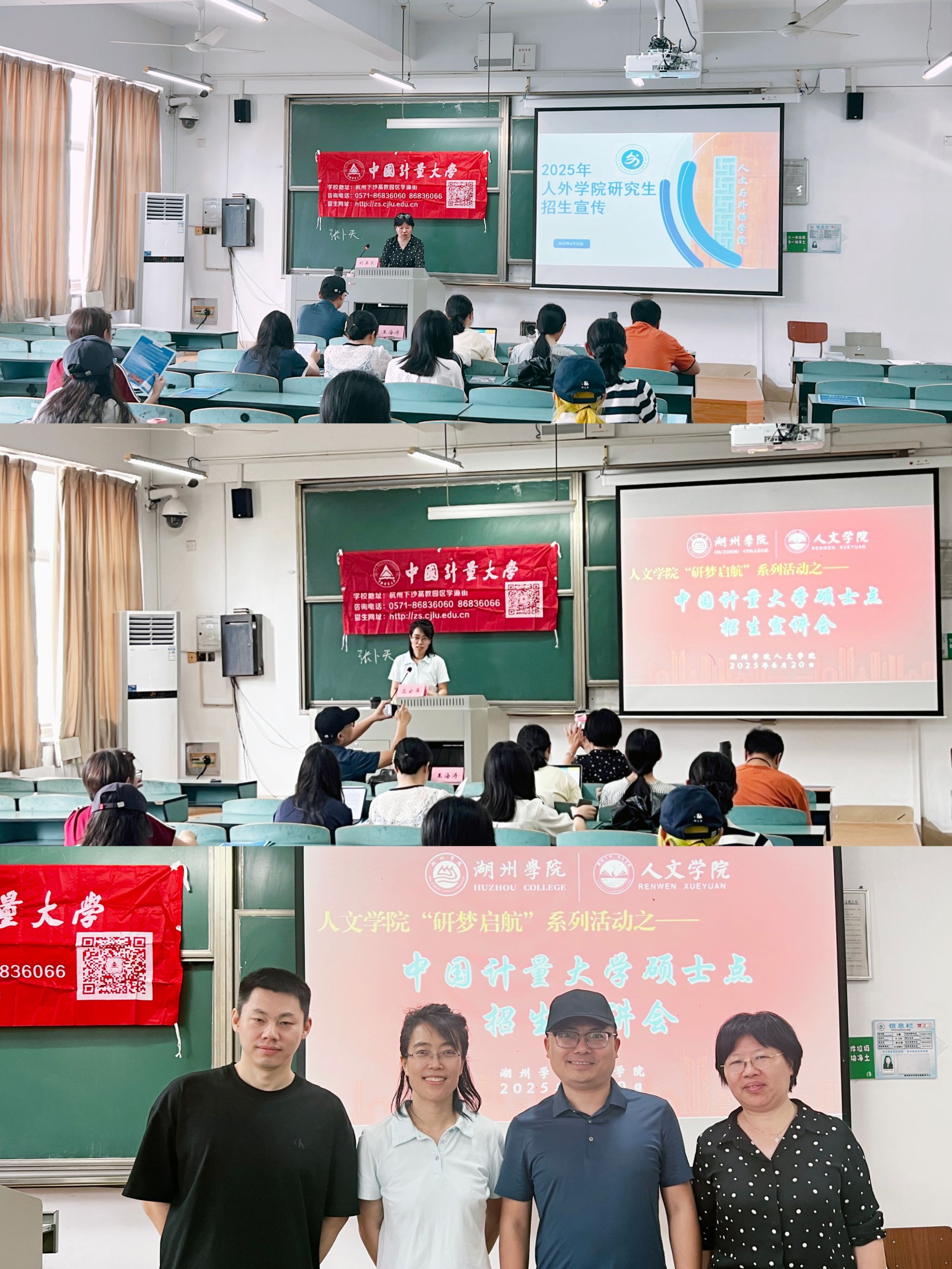 为吸引更多优秀学子报考本校研究生,提升研究生生源质量,我院安排了相关师生赴各地进行研究生学位点招生宣传活动。6月20日我院哲学学位点高云萍教授携李贯峰老师及国际中文教育学位点刘美兰教授一同赴湖州学院、湖州师范学院进行了2026年研究生招生宣传活动。