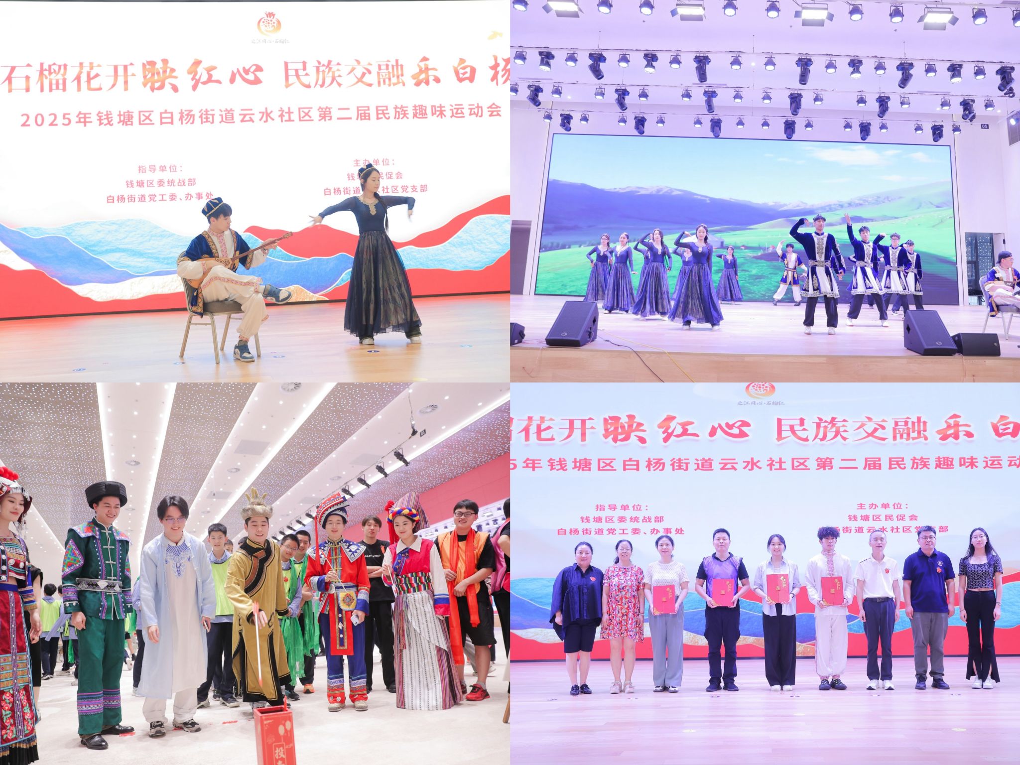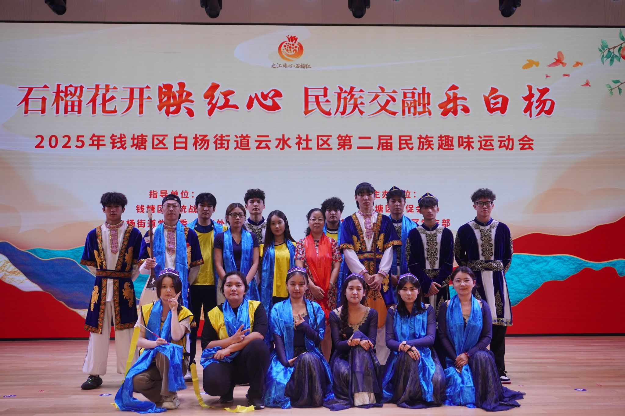 为增强民族凝聚力,铸牢中华民族共同体意识,6月23日下午,我校多民族学生参加由钱塘区统战部、白杨街道党工委指导,钱塘区民促会、云水社区党支部主办的“石榴花开映红心 民族交融乐白杨”2025年白杨街道云水社区第二届民族趣味运动会暨喜迎七一活动。