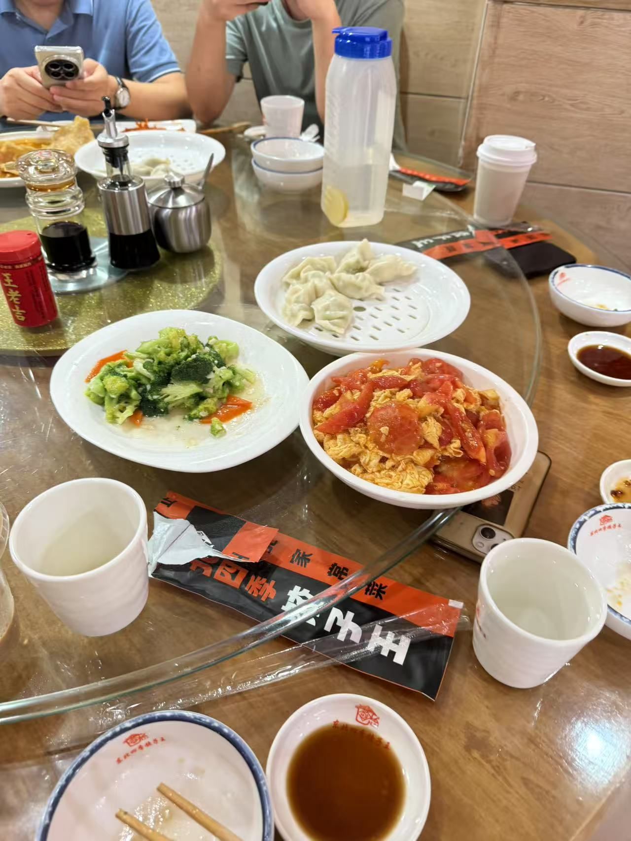 18岁的斯洛伐克少年维克多(Viktor Čech)是本届夏令营里最年轻的学员之一。这是他第二次来上海,上次陪同他来中国的父亲前不久背部受伤,不能长途飞行,他决定一个人来。他在城隍庙兜了一大圈,头发上满是喷淋降温系统飘下的水雾,发现豫园的中国菜品和各种小吃琳琅满目,一时无从下手。想在喧嚣的烟火气和川流不息的人海之中找到没吃过又有一点上海特色的食物,对他来说实在有些困难。他经常和家人保持联系,一再和家人说这里很安全,不用担心,但父母对他还是非常挂念。来中国第二天晚上,参加完李江老师家的家庭晚宴之后,他第二天给家里打电话,告诉家人他参加了一场令人难忘的中国家宴。看到在校场街来回转悠拿不定主意的维克多,蒋进国老师站在松月楼面点窗口前向他招手,把一颗热腾腾的烧麦放到他的手心。烧麦的馅儿是加了酱油带着咸味的糯米,外皮是晶莹剔透面粉。清瘦的捷克少年第一次品尝这咸香软糯的上海点心。中国人将大米和白面两种食物分开加工然后融合在一起,彼此分离又紧紧相依。这种生活哲学和思维方式,他可能一时间还难以理解。他立刻请蒋老师将“烧卖”记入自己的手机备忘录。这是他学习鲜活中文的秘诀。他认为,在当下的中国日常生活中随时随地用心记录和分析,是学习中文最好的方法之一。因为中国朋友聊天时随口说出的那些他没学过的新词,就是正在使用的最鲜活词汇,可能比教材上的词汇更地道、更有生命力。早上在杭州东站遇到助教刘懿瑶开始,两个年龄相仿的年轻人就开始聊天,他们探讨了“大叔”“大哥”“大姐”“弟弟”“小姐姐”“小孩哥”的使用场景及其微妙的区别。他的中文水平可能已经达到了HSK5级,但是因为在斯洛伐克的汉语考级考点非常少,他没有机会拿到汉语水平的成绩单,他准备将来到奥地利去参加测试。蒋老师推荐他尝尝“荠菜包子”,他毫不犹豫加入松月楼面点窗口的长队。冒着热气的包子一口咬下,荠菜的清甜混合芝麻油的醇香,让他连连点头:“好吃极了!”