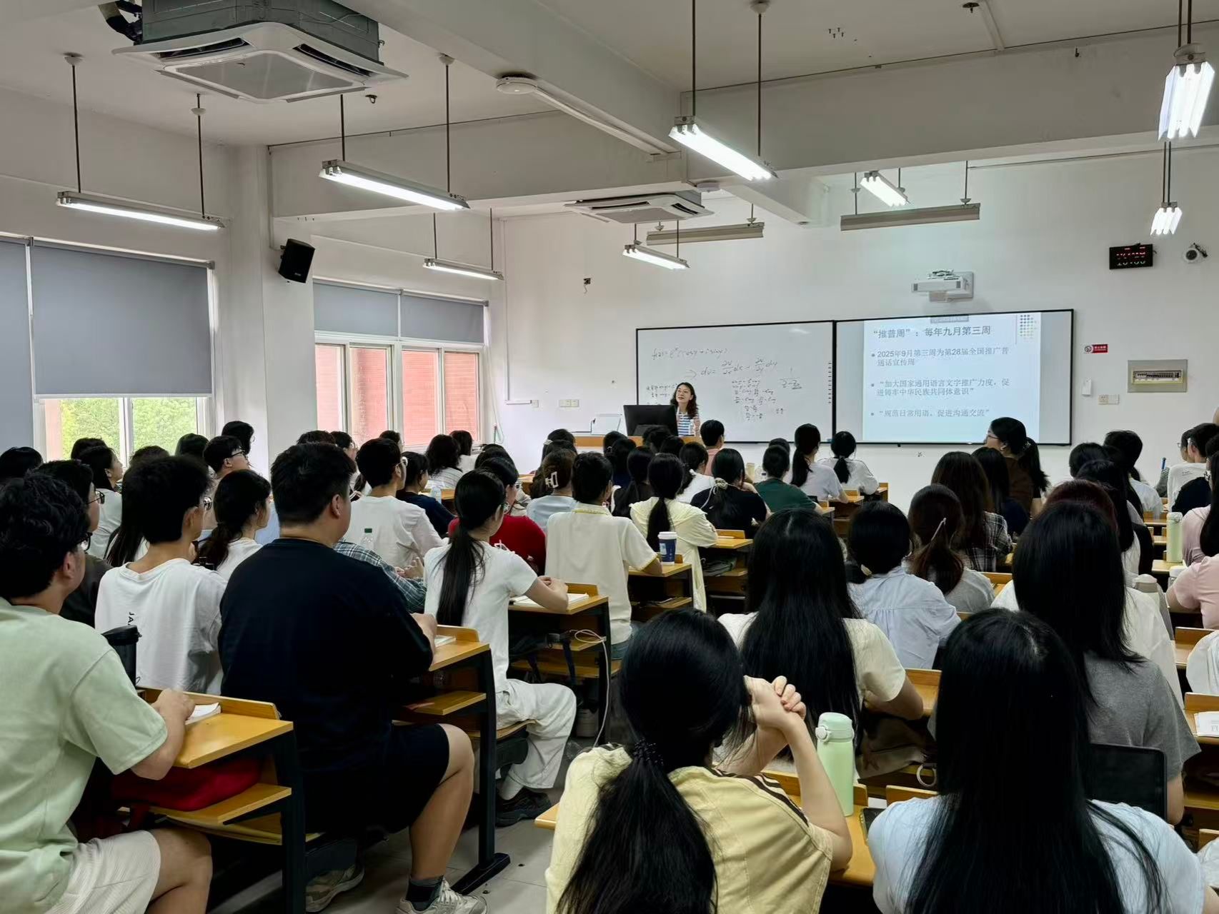 我校积极响应党中央、国务院关于加大国家通用语言文字推广力度的战略部署,为迎接本届推普宣传周的到来,人文与外语学院于2025年9月11日上午10点,在环宇楼B202教室,举办了主题为“规范日常用语,促进交流沟通”专题讲座。讲座由中国计量大学普通话水平测试中心副主任、国家级普通话水平测试员李江老师主讲。