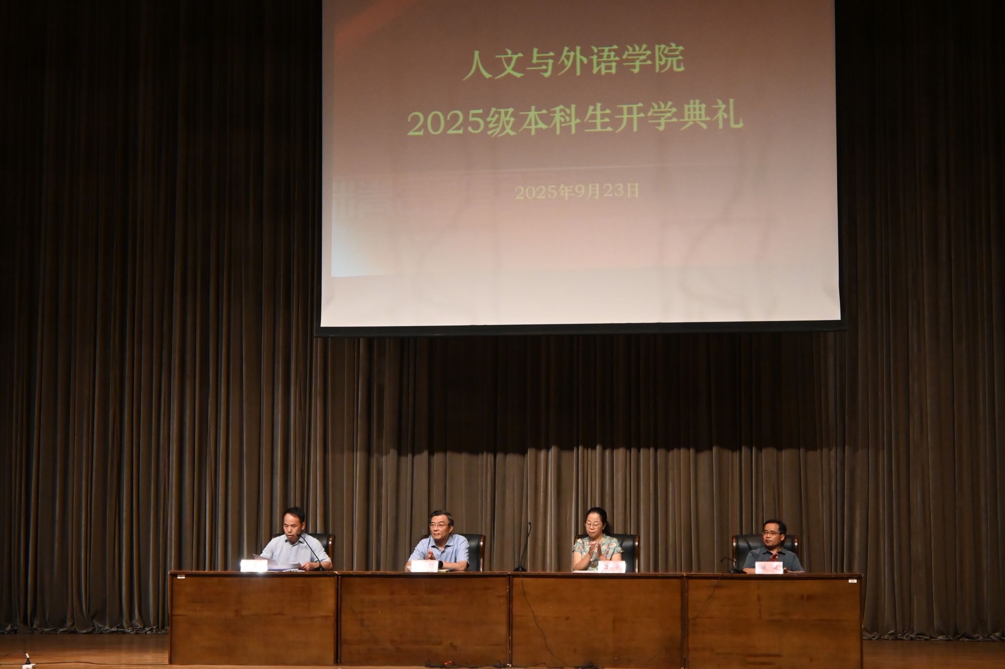 秋风送爽,金桂飘香。9月23日晚,人文与外语学院2025级本科新生开学典礼暨入学教育大会于嘉量大会堂盛大举行。学院院长邱高兴、党委书记赵蓓茁、党委副书记金民华、副院长姚岚、全体新生班主任、辅导员、教务员以及2025级全体新生齐聚一堂,共同开启大学新篇章。