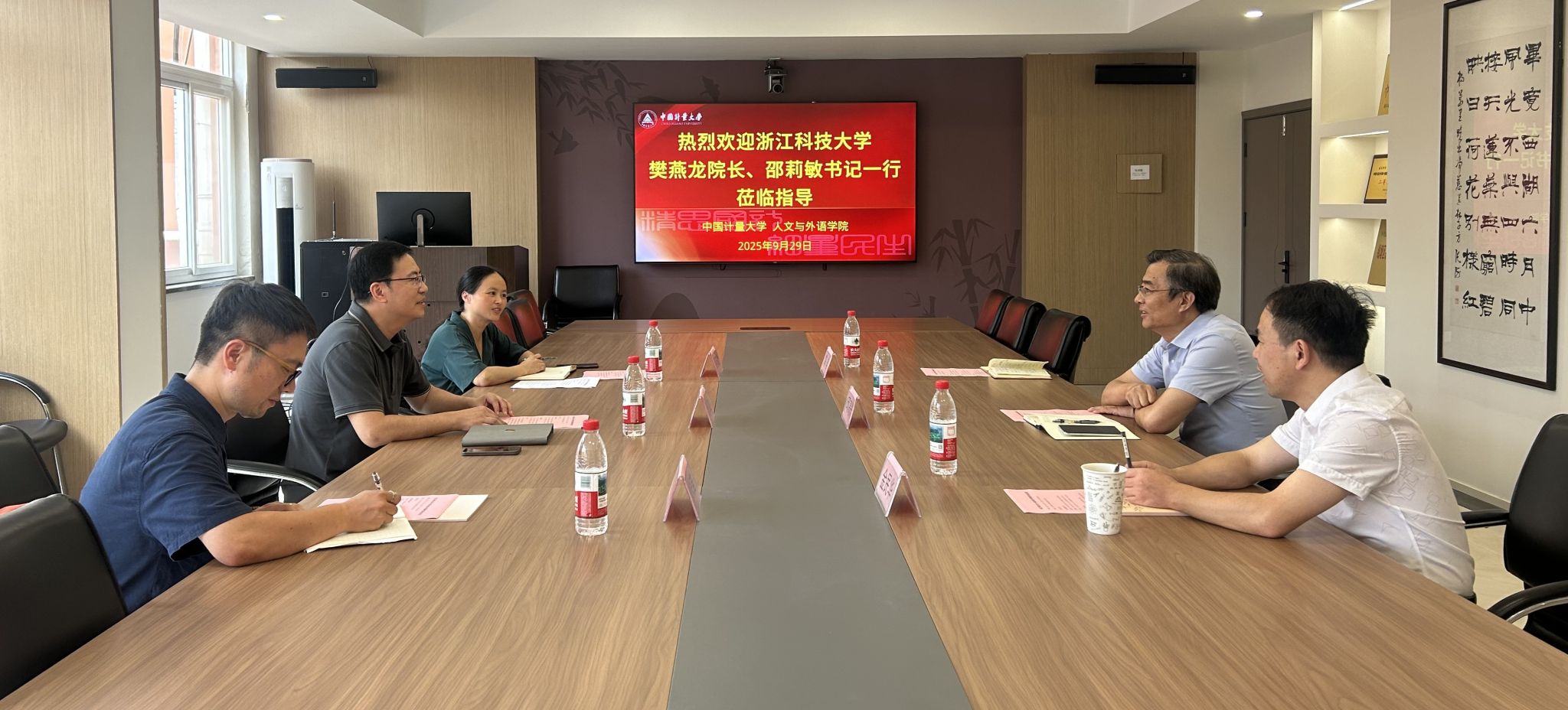 9月29日,浙江科技大学人文与外国语学院院长樊燕龙、书记邵莉敏一行到我校人文与外语学院调研,学院院长邱高兴、副书记金民华等参加座谈。