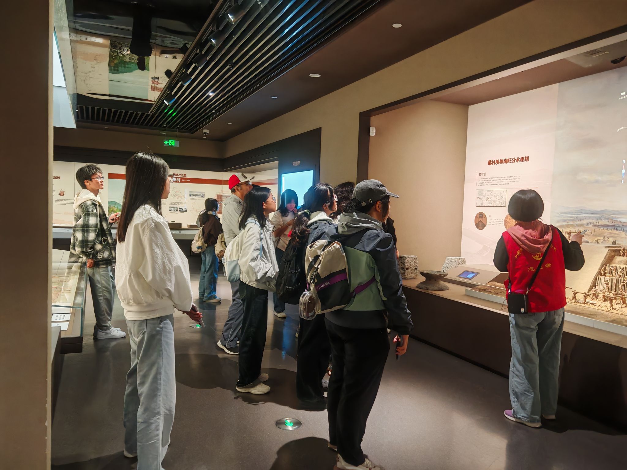 抵达京杭大运河博物馆后,在馆内工作人员的专业讲解及引导下,同学们通过参观馆内陈列的历史文物、动态呈现的现代化动画,以及还原古代工程场景的工艺品,深入地了解到了古代集权体制下的资源调配逻辑、大型工程管理模式与跨区域协作机制。馆内还专门设立“运河生态保护”“跨区域文化协同发展”等专题展区,集中展示大运河申遗成功后,流域内在生态修复、文化资源整合、文旅融合发展等领域的现代治理成果;此外,作为公共文化教育平台,博物馆常年开展“运河治理”主题讲座、青少年研学等活动,有效推动公众参与运河文化保护与流域治理,成为连接历史治理经验与当代公共管理实践的关键纽带。