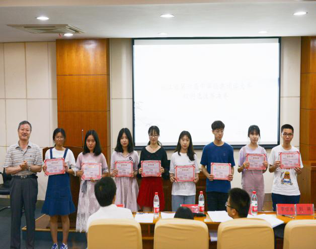 人文与外语学院中文系主任蒋进国老师在比赛开始前进行了动员,希望同学们能够取得优异的成绩,并预祝比赛取得圆满成功。22位参赛选手经过初赛、复赛的层层选拔,成功闯入决赛。决赛中分成3人一组,每位参赛选手在上场前要抽取两篇古代篇章,两篇现当代篇章以及一篇演讲题目,在抽取的篇目中选择一篇古代文学篇章和一篇现当代文学篇章分别进行朗诵,演讲围绕主题要在三分钟内完成。
