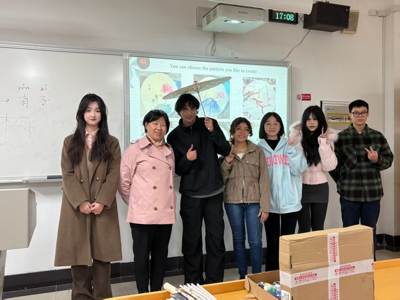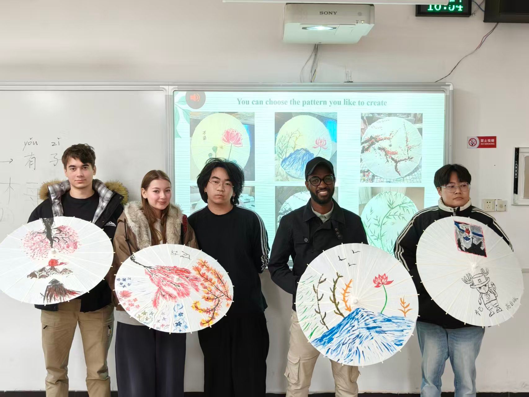 活动现场始终洋溢着欢声笑语。留学生们纷纷表示,这堂课远不止于绘画,更是一次深度的文化沉浸与情感连接。他们手持自己创作的、举世无双的油纸伞合影留念,镜头定格的,不仅是色彩与图案,更是来自四大洲的年轻人在中华文化纽带下结下的深厚友谊。