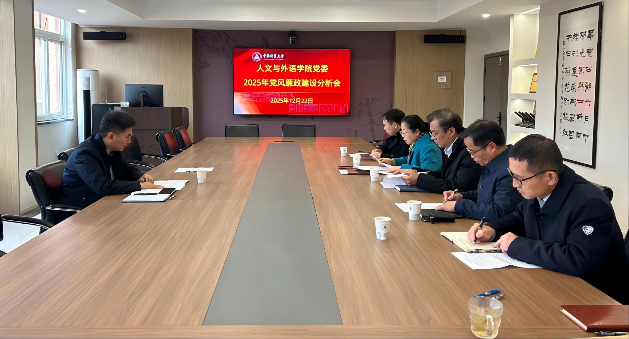 为深入学习贯彻党的二十大和二十届四中全会精神,压紧压实全面从严治党政治责任,12月22日,人文与外语学院党委召开2025年度党风廉政建设分析会。副校长王斌锐到会指导,人文与外语学院党政领导班子成员参加会议。会议由学院党委书记赵蓓茁主持。