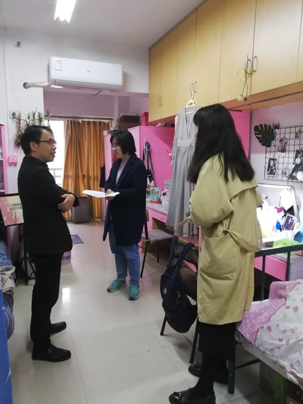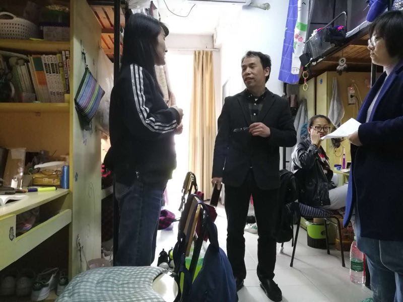 走访过程中,金民华耐心询问了党员寝室、党员联系寝室的具体情况,详细解答了同学们在学习和生活的困惑,现场气氛愉快融洽。在党员联系的寝室中,大部分是新生寝室,同学们表示能够跟优秀的学长学姐近距离的接触,非常有意义,也希望在学习和生活上得到更多的指导和帮助。金书记在为同学们解疑释惑的同时,鼓励大家积极向优秀党员求教经验,帮助自身更好地成长和发展。最后,金书记充分肯定了开展党员寝室和党员联系寝室工作的成效,并就下一步改进方向,提出了三点希望。一是希望党员继续切实履行责任,充分展现学生党员的榜样力量,提升服务学生群体的能力。二是希望党员寝室在达到整洁干净的基础上,进一步凝练文化特色,探索建设富有内涵的示范党员寝室。三是希望党员在联系寝室的过程中,加强思想引领,引导大家做好学业规划,提升自我管理意识,养成良好的学习生活习惯。