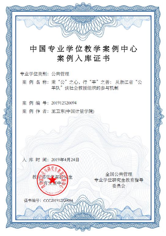 在教育部学位与研究生教育发展中心和全国公共管理专业学位研究生教育指导委员主办的新一轮中国专业学位教学案例评选中,我校人文与外语学院教师王卫东教授、翁列恩副教授等撰写的案例《秉“公”之心,行“羊”之善:从浙江省“公羊队”谈社会救援组织的参与机制》、《扁平化、数字化与智慧化:“最多跑一次”引发的思考——基于“放管服”改革的背景》两个案例成功入库。