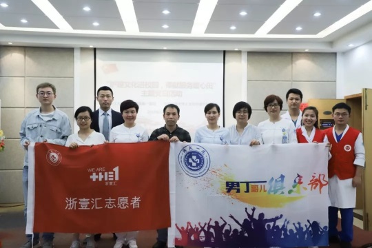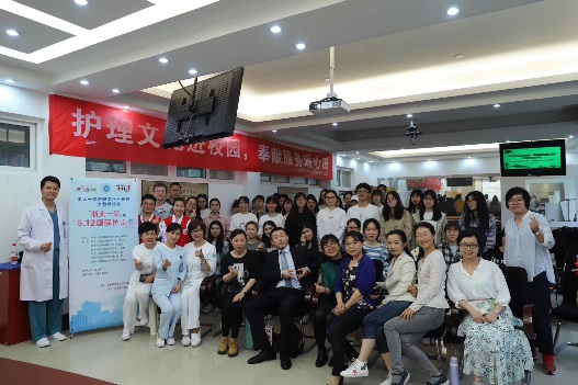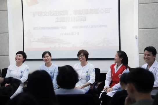 2019年5月15日,人文与外语学院联合浙江大学医学院附属第一医院开展“护理文化进校园,奉献服务暖心田”主题党日活动。浙大一院泌尿外科护士长何庆伟、手外科护士长陈国英、外科重症监护室护士长陈霞、浙壹汇志愿者负责人王颖、手术室男护士代表魏世龙、姜智文,人文与外语学院党委副书记金民华、组织员殷惠兰,师生党员、入党积极分子等50余人参与了本次活动。活动由浙大一院外科监护室男护士滕耀华主持。
