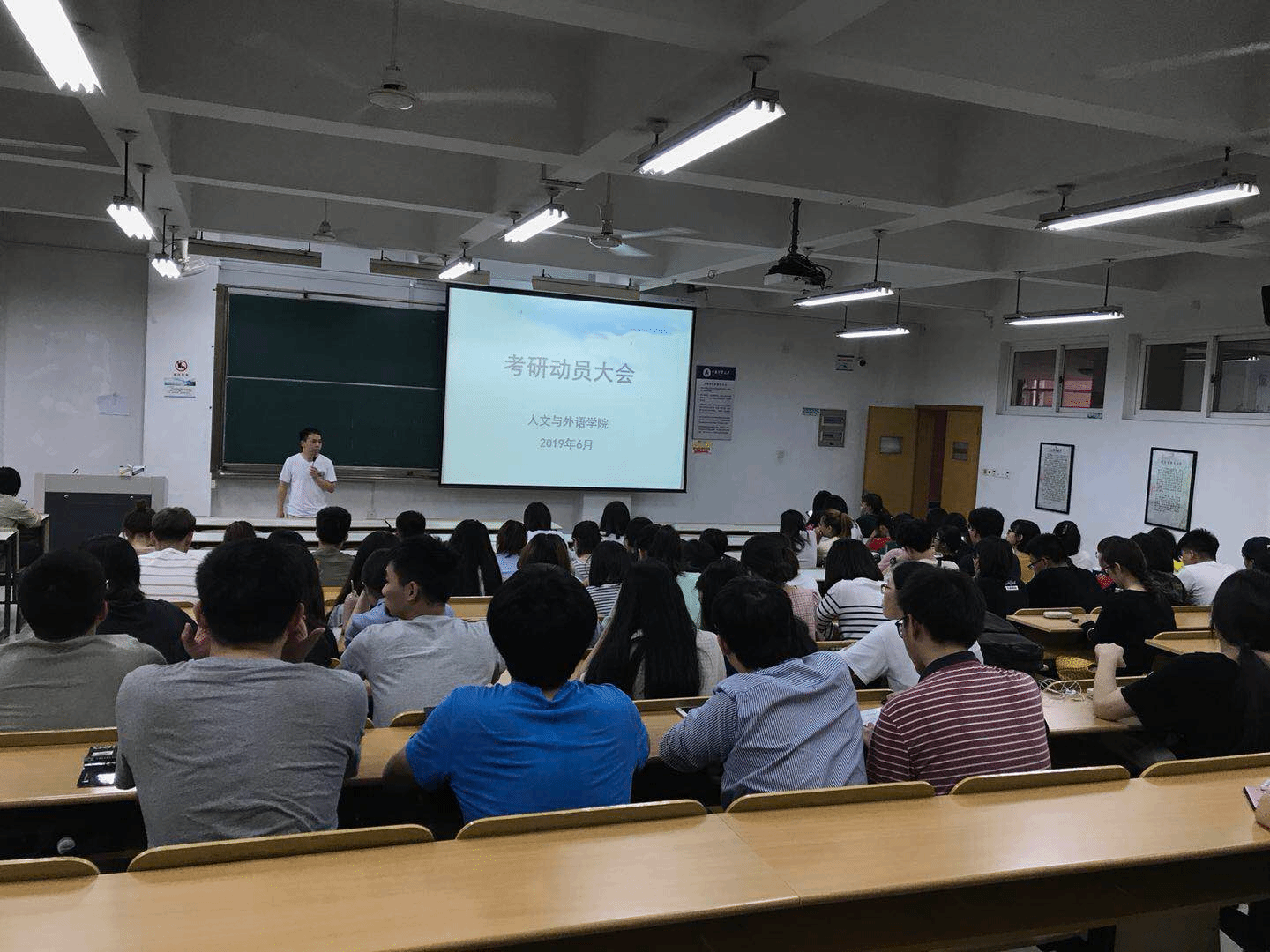 为鼓舞学生斗志、明确考研目标,了解考研信息,掌握考研技巧,6月16日晚,人文与外语学院举办了2016级考研动员大会。学院党委副书记金民华、学工办主任贺强、辅导员殷惠兰及2016级部分学生参加了会议。