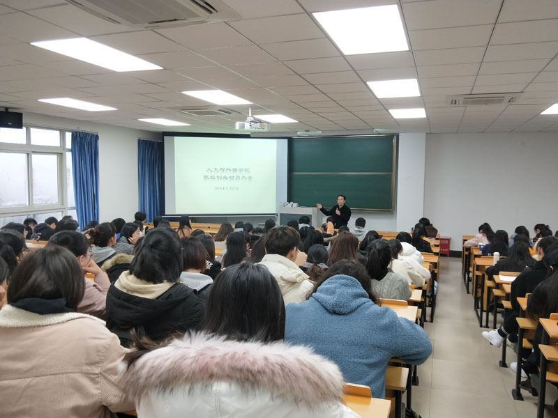 11月27日下午,人文与外语学院在翔宇楼403教室举行就业创业动员大会,学院党委副书记金民华、学工主管赵敏以及毕业班学生出席了动员大会。