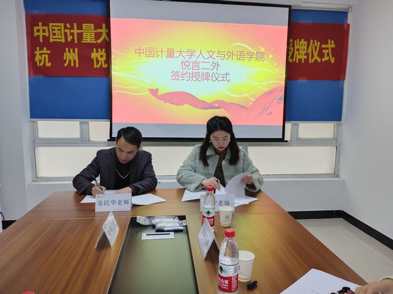 11月26日下午,人文与外语学院新建教学实习基地签约仪式在杭州悦言教育科技有限公司举行。人文与外语学院党委副书记金民华、学工主管赵敏,悦言二外杭州分校副校长刘宁、杭州分校市场部副主管龙娇、教学部总监宋佳、杭州分校教学部副经理陈露等出席了签约仪式。仪式由龙娇主持。