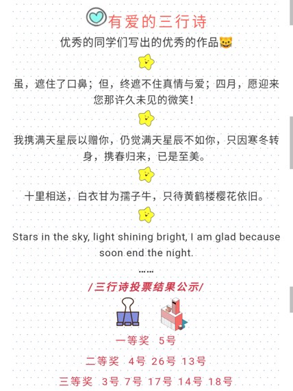 本次活动主要面向2019级学生,受到同学们的广泛欢迎。在来稿作品中,同学们以笔墨抒发情感,或是赞颂前线医生无惧危险、奋勇向前,或是称道中华儿女团结一心、众志成城,又或是希望疫情过去、山河无恙……寥寥数字,其中却蕴含无数真情。