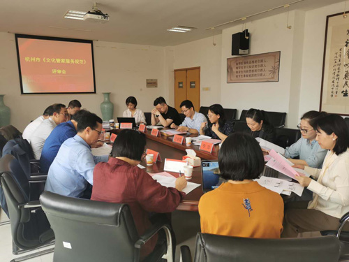 9月27日下午,人文与外语学院在格致南楼222会议室组织召开杭州市《文化管家服务规范》评审会,浙江省文化和旅游厅二级调研员(原公共服务处副处长)仲建忠,浙江省文化馆党委副书记王全吉、杭州市文化广电旅游局国际处处长张鹏、杭州市文化广电旅游局公共服务处处长马遒、萧山区文化和广电旅游体育局副局长汪春霞、浙江省标准化研究院社会管理标准研究中心主任郑培、杭州市标准化学会秘书长李南阳、新青年歌舞团有限公司总经理张钎等相关领导和专家莅临参会,人文与外语学院副院长虞华君、行政管理系系主任霍荣棉、公共服务标准化研究所副所长吴丽出席会议。