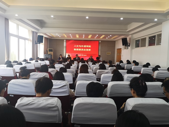 会上,苏俊杰对教师们在学院学科建设、教学科研、人才培养等方面做出的努力和贡献表示感谢,并对学院教授委员会组成和产生条件、选举程序、时间安排进行了说明。苏俊杰向大会报告了教授委员会委员候选人酝酿、产生的过程和候选人名单。大会审议并通过了《人文与外语学院教授委员会委员选举办法》,并根据选举办法进行了无记名投票,差额选举产生了学院教授委员会。