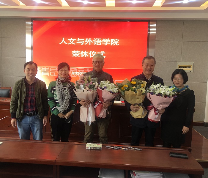学院党委书记苏俊杰代表学院全体教职工感谢毕老师和李老师对人文与外语学院的发展做出的贡献,并表达了美好的祝愿,希望做好新老教师的传承,继续推进育人工作。