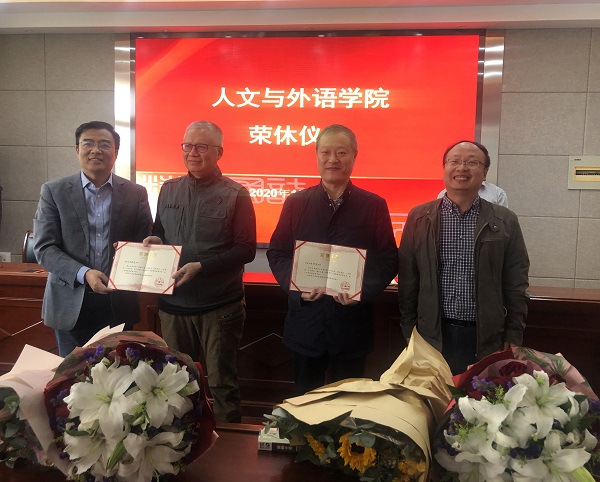 10月28日下午,人文与外语学院全体教职工在格致中楼307举行了毕晓光和李惊涛两位教师的荣休仪式典礼,学院党委书记苏俊杰主持仪式。