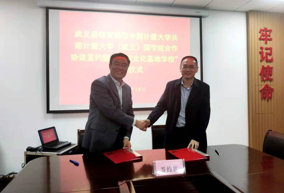 为进一步落实《中国计量大学与武义县人民政府战略合作协议》相关条款,加强校地合作,推进诗路文化教育与传统文化弘扬,经双方友好协商,中国计量大学(武义)国学院与武义县教育局于11月18日举行了共建签约仪式,并对首批10所“传统文化基地学校”进行了授牌。