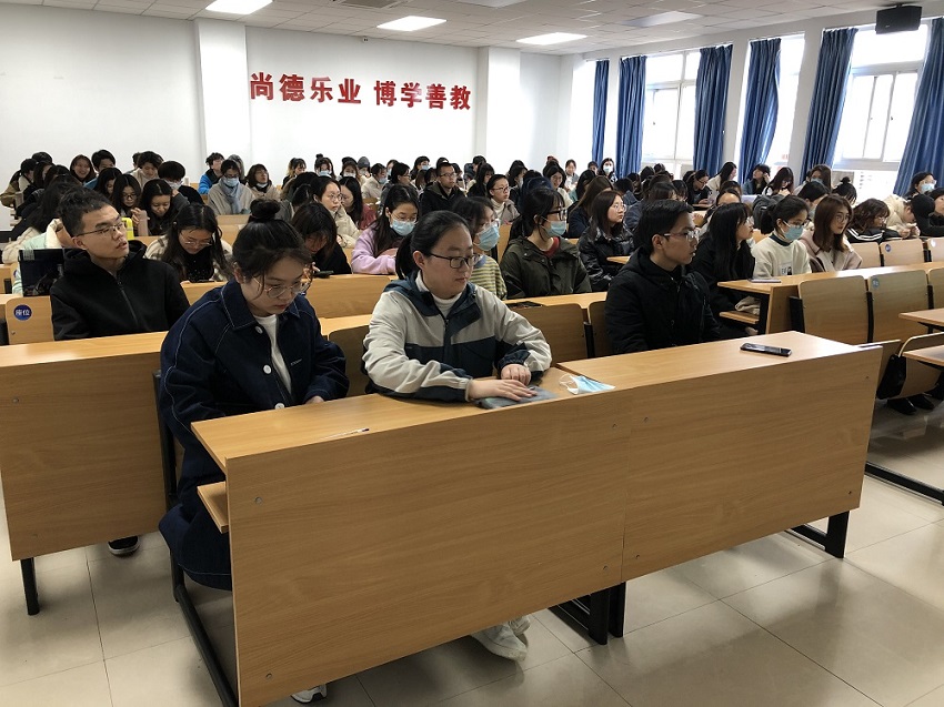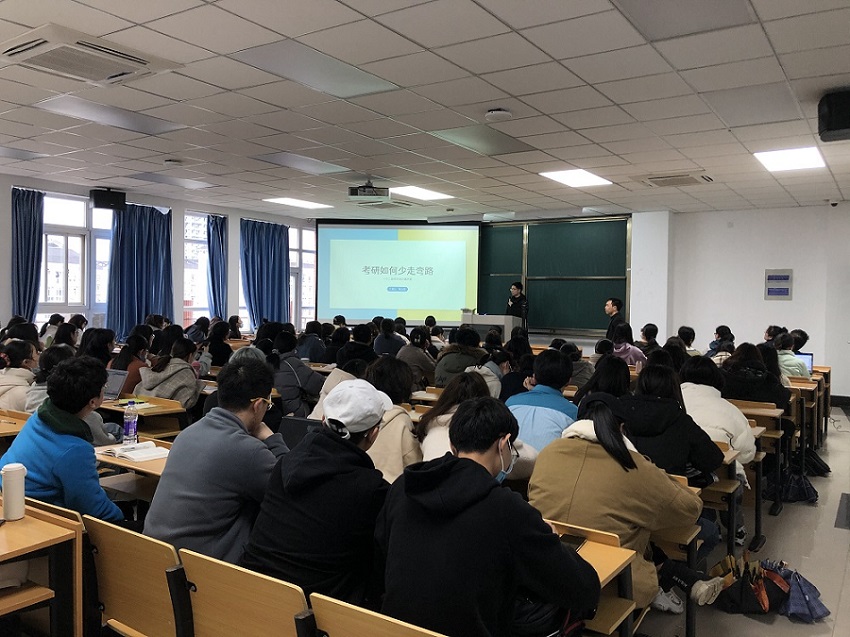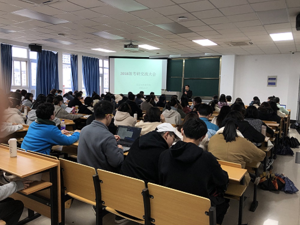 2021年3月17日下午人文与外语学院在翔宇402教室举办了本年度首场面对面形式的考研经验分享会。本次分享会由学工书记金民华老师主持,邀请到我校2016级汉语言文学专业毕业生陈立崇同学作为嘉宾分享考研择校经验。2018级学生逾百人参加了本次分享会。
