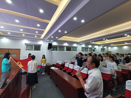 “我志愿加入中国共产党,拥护党的纲领,遵守党的章程……”6月18日,人文与外语学院92名新党员,在院党委书记苏俊杰领誓下,面向国旗,庄严宣誓。