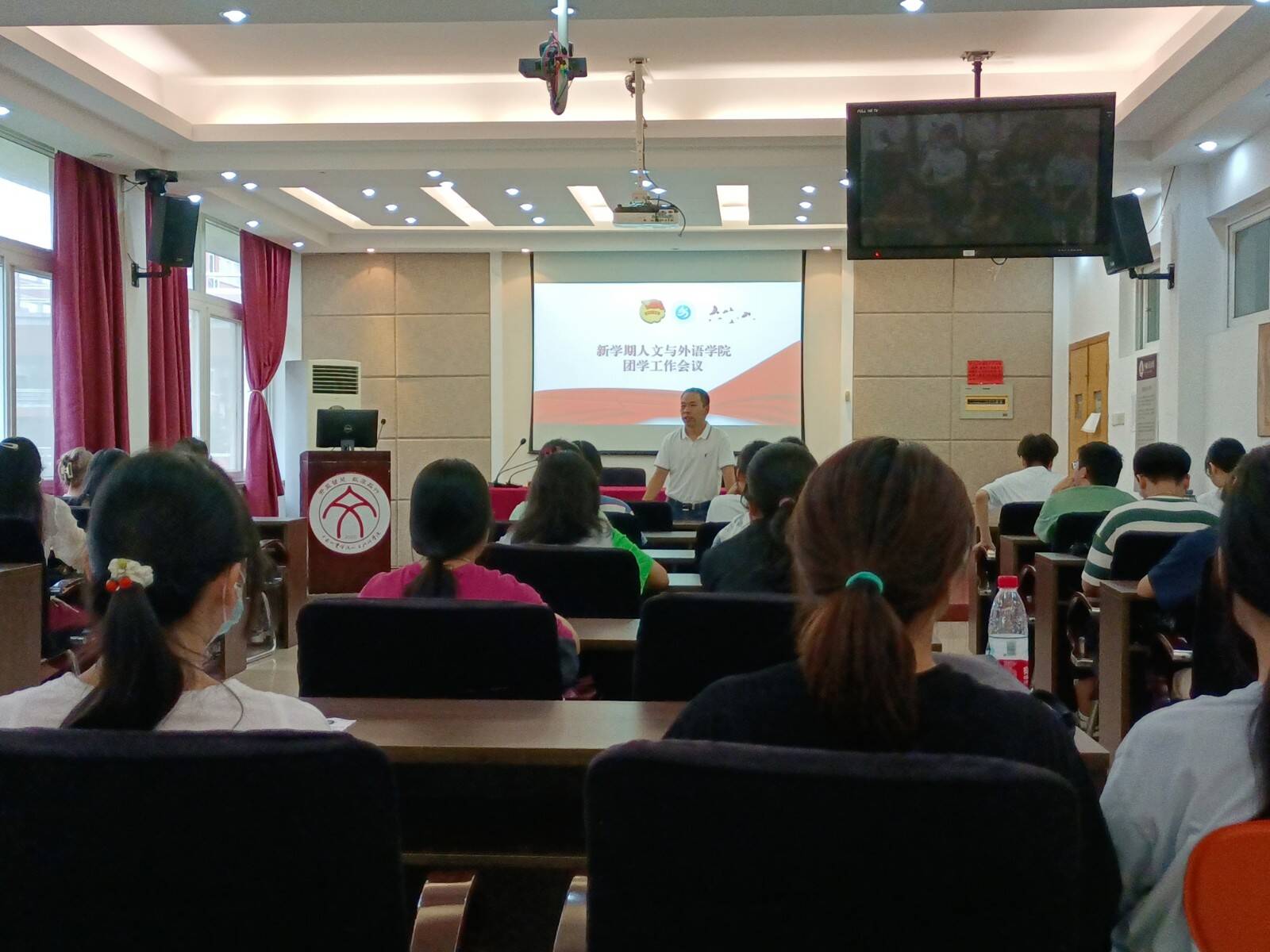 9月14日中午12:30,人文与外语学院新学期团学工作会议在格南205召开。参与会议的有学院党委副书记金民华、团委副书记董剡筠、主席主任团成员以及各学生组织负责人。