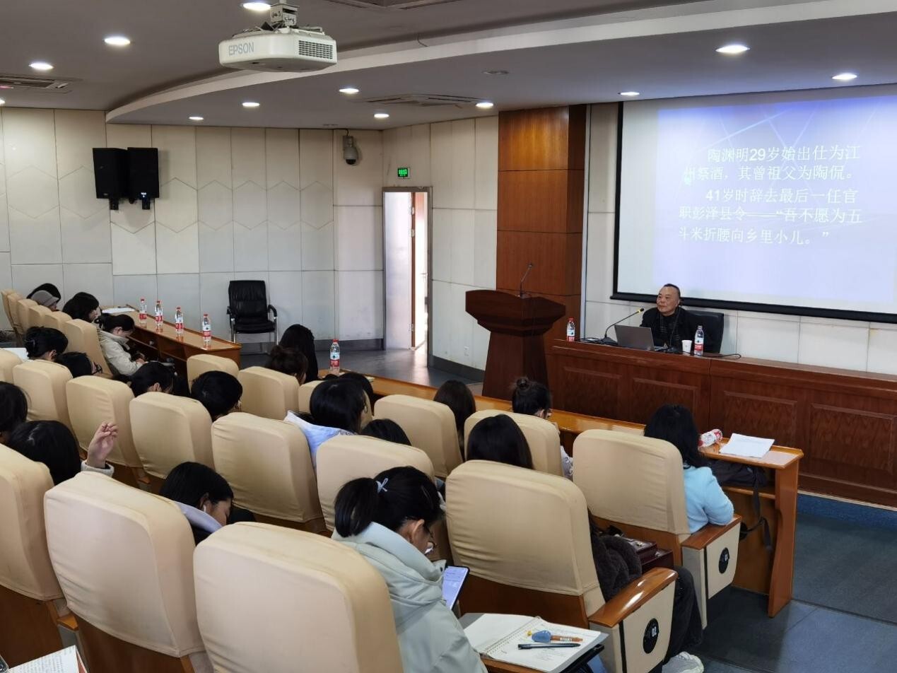 为拓宽学子视野以彰显人文风采,11月24日下午,浙江工业大学人文学院教授肖瑞峰应邀来校,为人文与外语学院师生作题为《诗与仕》的学术讲座。讲座由人文与外语学院中文系主任赵素文老师主持,中文系师生参加讲座。