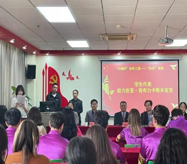 来自人文与外语学院2019级公共管理1班的预备党员祖力皮亚·吾布力卡斯木同学发言,表达了自己对中华民族共同体意识和中国共产党的认识,在新时代追忆革命先辈当年的艰苦奋斗、勇于牺牲的革命精神,感到自豪和荣幸,增强了时代使命感和责任感,同时也表达了对学校的感谢和对“启志”讲堂的期待。
