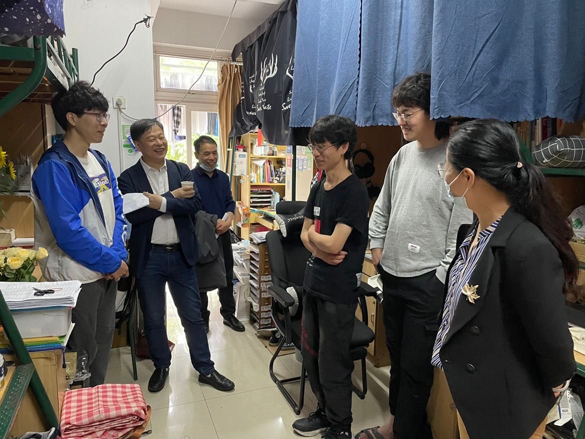 5月12日,校纪委书记章建生走进1号西楼304寝室,看望“四个一”联系的人外学院学生,关心同学们学习生活状况,对他们个人发展提出殷切期望。校学工部副部长金杰、人外学院院长邱高兴、党委书记赵蓓茁、党委副书记金民华等参与走访。