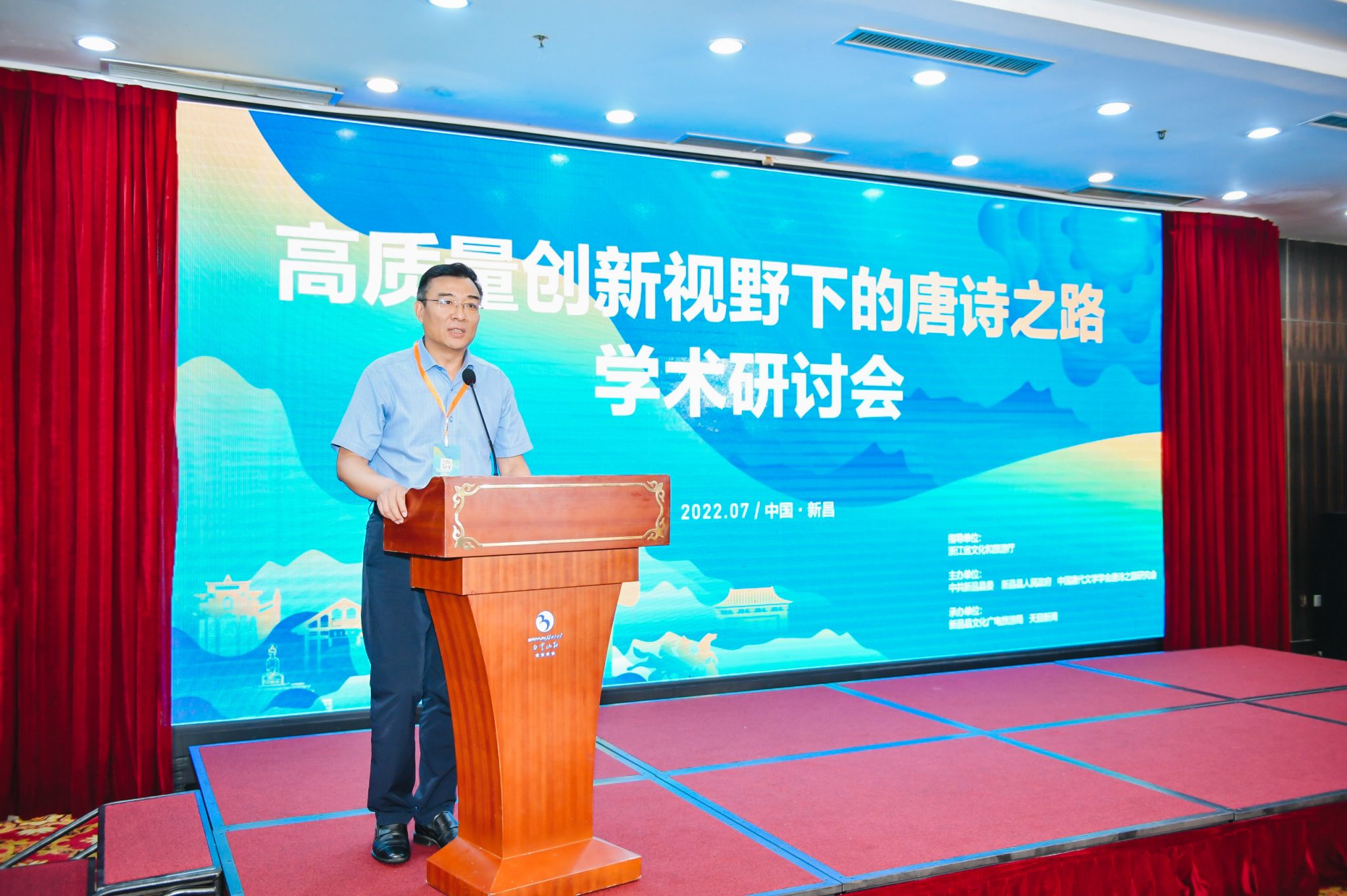 7月22日上午,“高质量创新视野下的唐诗之路学术研讨会”在新昌白云山庄顺利召开,来自全国各地的唐诗之路研究专家和新昌本地学者四十余人出席了会议。此次会议由中共新昌县委、新昌县人民政府、中国唐代文学学会唐诗之路研究会联合主办,我校作为唐诗之路研究会秘书处单位,参与了此次会议的组织工作。