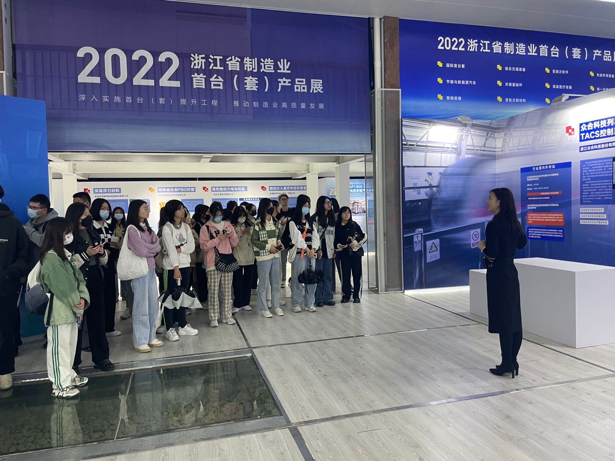 白塔综合体是浙江省制造业高质量发展的展示窗口,是浙江省工业文化的传播窗口,同时也是政企学研银精准合作的服务平台。在白塔综合体的工作人员的带领下,师生们对首(台)套及专精特新企业与展品表现出浓厚的兴趣,认真倾听现场专业人员的细致讲解,系统全面了解了浙江省工业文化与浙江省制造业高质量发展的相关知识。