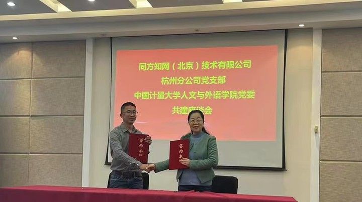 会上,双方党支部分别介绍了本支部基本情况,围绕科研服务、平台建设、人才需求等内容展开深入交流,并签订《同方知网(北京)技术有限公司杭州分公司党支部 人文与外语学院党委党建共建协议》。
