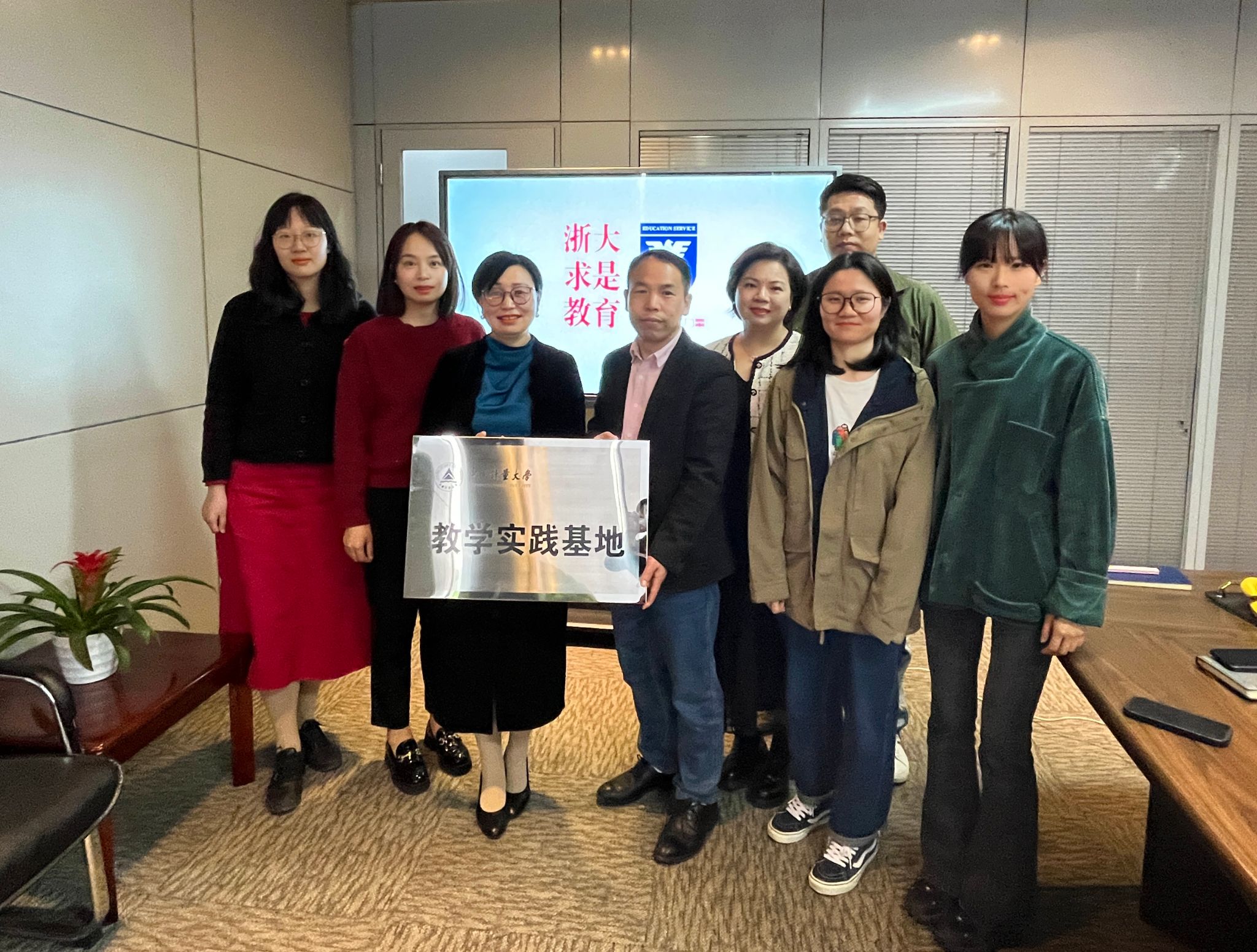 黄翠萍、金民华分别代表杭州浙大求是教育服务有限公司和人文与外语学院签署教学实习基地协议,并举行了“教学实践基地”授牌仪式。