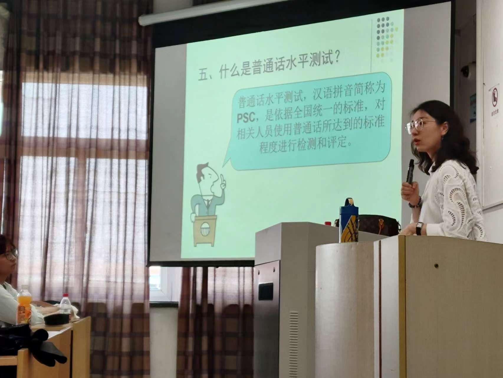 为倡导全体师生讲普通话,用规范字,传承弘扬中华优秀语言,9月19日上午,由人文与外语学院主办的推广普通话专题讲座在中国计量大学环宇楼C501教室顺利进行。 我校国家级普通话水平测试员、校普通话水平测试中心副主任李江老师,为同学们开展了主题为“说标准普通话,读经典好作品”专题讲座。