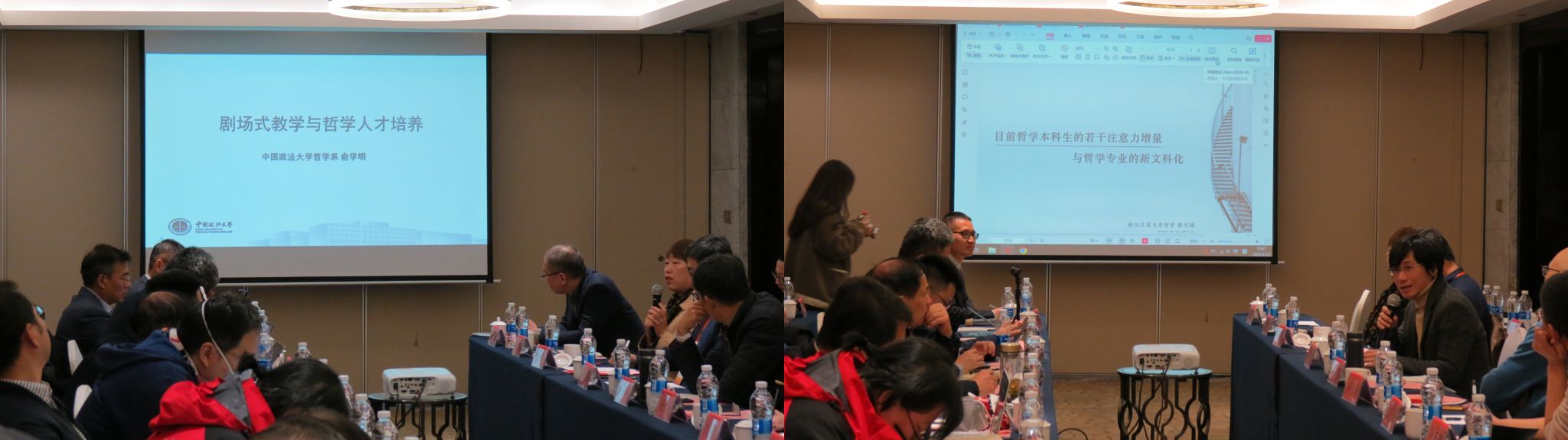 中国政法大学俞学明教授结合中国政法大学的哲学实践,做了“剧场式教学与哲学人才培养”的报告。将剧场式教学引入课堂,不仅激发学生的哲学兴趣,还给予学生自我展现的机会。俞学明还指出,哲学学科建设中内驱实力是关键,特别是师资力量尤为关键。