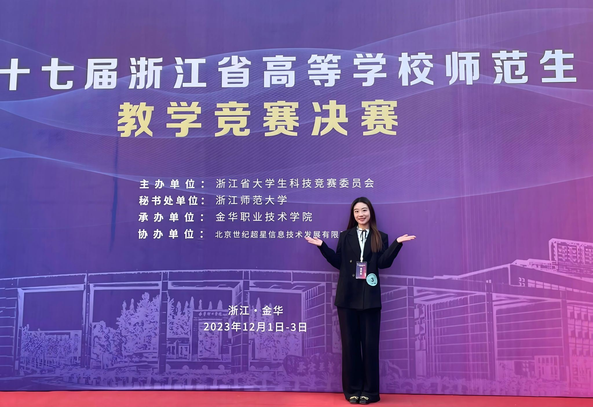 由浙江省大学生科技竞赛委员会主办的浙江省高等学校第十七届师范生教学竞赛于2023年12月3日落下帷幕,来自浙江师范大学、杭州师范大学、宁波大学、温州大学等省内众多院校的组337位选手(其中非师范生35人)各展风采、比拼技能。经过两天的激烈角逐,我校21级马克思主义学院研究生董文婷获得综合一组三等奖,这是我校在该项赛事的首个奖项,取得历史突破性成绩。我校马克思主义学院副教授周爽和人文与外语学院教师彭飞获“优秀指导老师”奖。