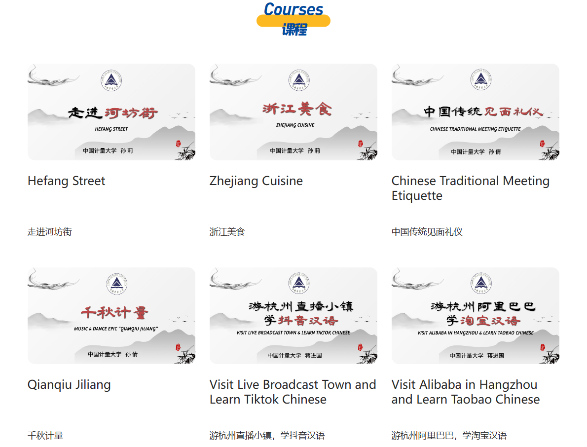 本次线上团组交流项目在每堂课安排了交流互动环节,同时在教学与互动中融入了“坐地铁去看亚运会”“在小百花听越剧”“杭州市长白居易”“游杭州直播小镇,学抖音汉语”“游杭州阿里巴巴,学淘宝汉语”“千秋计量”等一系列中国、浙江、计量的热点和时事,期冀使身在海外的团组学员能够直观体验杭州特色与魅力。