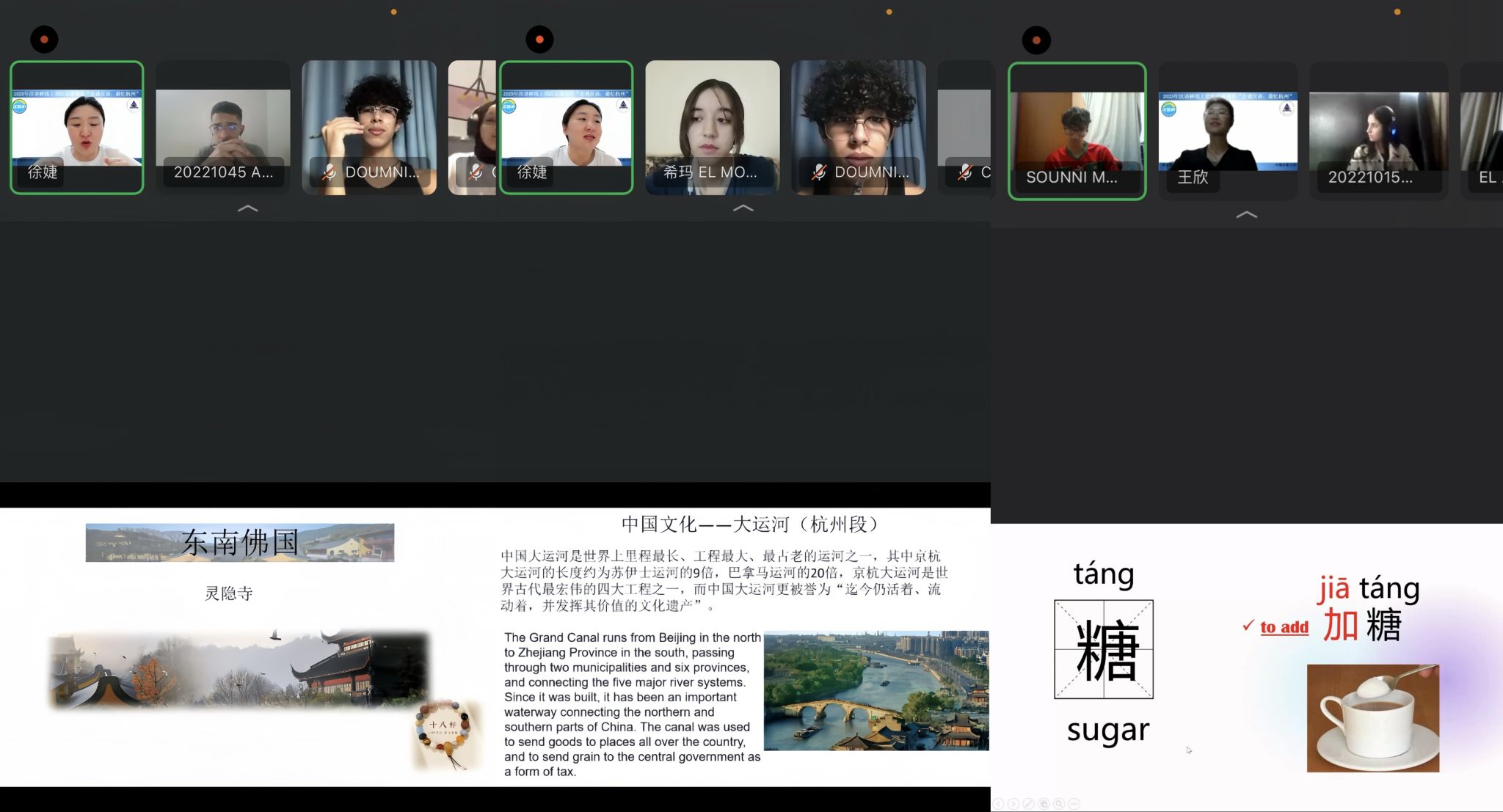 近日,由教育部中外语言交流合作中心主办、中国计量大学承办,以“会通汉语,最忆杭州”为主题的“汉语桥”线上团组交流项目在我校人文与外语学院顺利结营。来自非洲摩洛哥的近100名师生相聚云端,共同参加了交流项目。