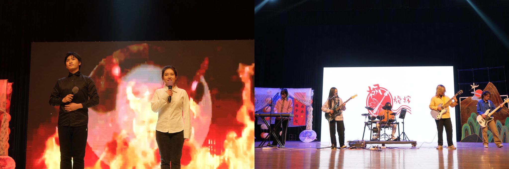 随后,晚会在古韵乐府民乐社所带来的《明月天涯》器乐表演中,拉开帷幕。21外语1班余子羚同学表演的古典舞《万蝶振翅》展现了中华传统舞蹈的古朴典雅、悠扬婉转;2023年浙江省大学生中华经典诵读竞赛获奖团队朗诵的节目《秋瑾》演绎了英雄秋瑾于饥饿贫乏的乱世之中为女性、为国家的呼喊,响彻云霄,向当代青年传递了为中华崛起而努力奋斗的号召;Star.T带来的舞蹈《SHOW YOU GOOD》彰显了大学生朝气蓬勃、激情澎湃的青春风采;SKY音乐社的阿卡贝拉声乐表演曲目《七里香》将如雨水般满溢的爱意,如落叶般堆叠的思念,化作一首首美丽的诗;人外学院艺术实践中心带来的歌舞节目《知否、知否》唱出了时光易逝,舞出了深情眷恋,中华优秀传统文化与现代演绎水乳交融,品古意,思今日,中华文化赓续千年、一脉相承。