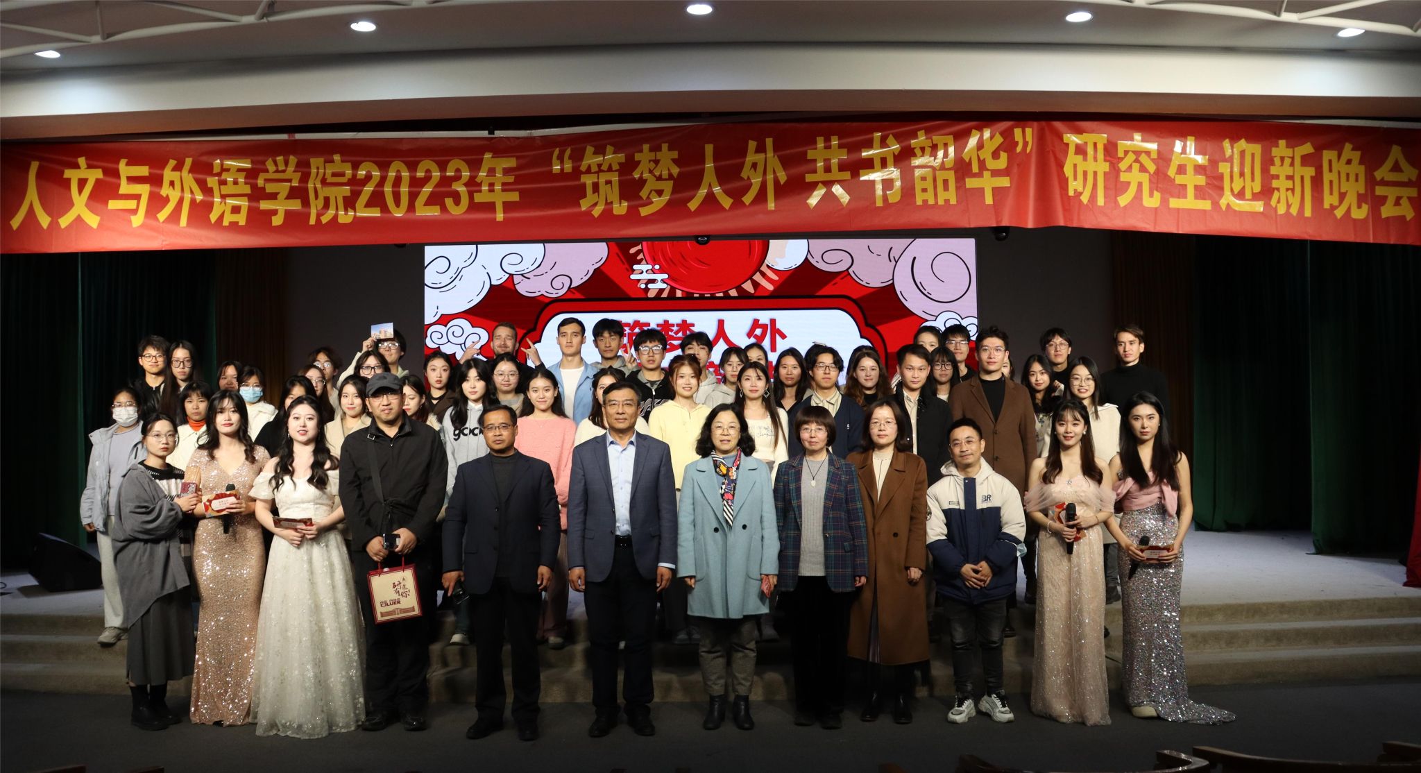 本次晚会在热烈而欢快的气氛中结束,充分展现了人外学子勇往直前、不屈不挠、追求卓越的精神风貌,使新生深刻感受到学院的蓬勃朝气与温暖热情。本次活动利于学院文化建设与育人环境进一步夯实,促进了各年级、各专业研究生与导师之间的交流,激发了新同学们团结协作、勇攀高峰的精神。展望新的一年,坚信在全体师生的共同努力下,人文与外语学院必将继往开来,砥砺奋进,取得更加辉煌的成就。