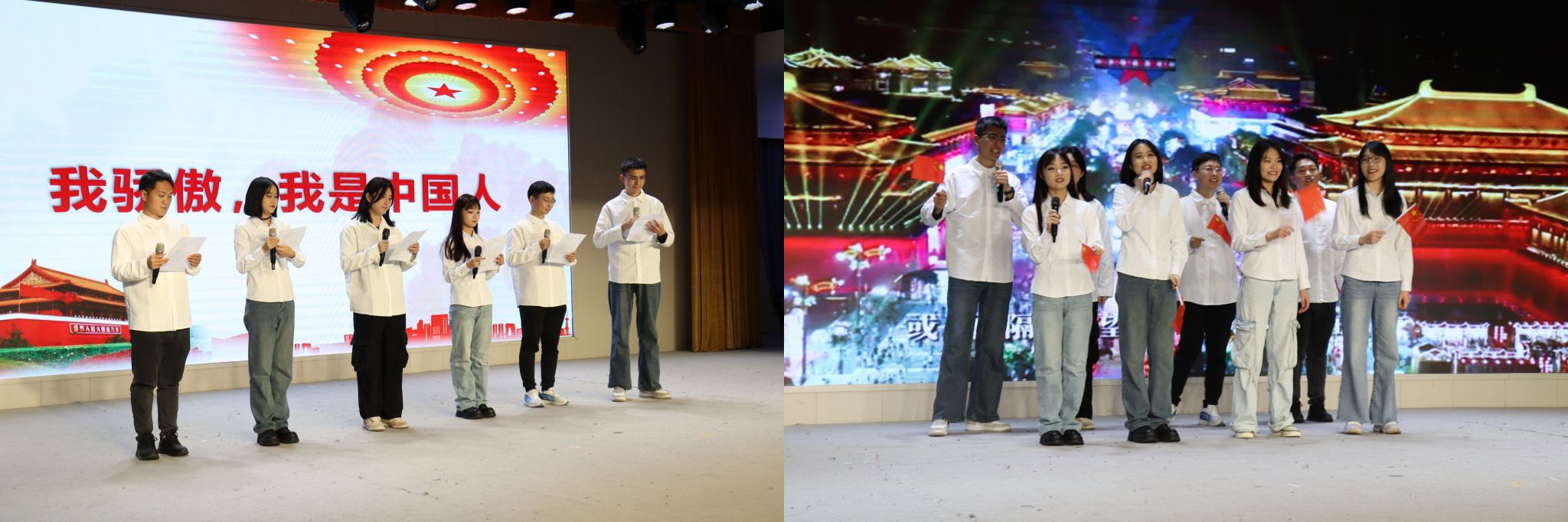 诗朗诵《我骄傲,我是中国人》如同一股澎湃激昂的洪流,席卷了每一个听众的心灵。朗诵者们用深情的语调,描绘了中国人民为了民族独立、人民幸福而不懈奋斗的壮丽画卷。汉语国际教育研究生们用和谐而富有感染力的声音,演绎了歌曲《相亲相爱》,将晚会的气氛推向了最高潮,传递了人类情感中最真挚、最温暖的一面。