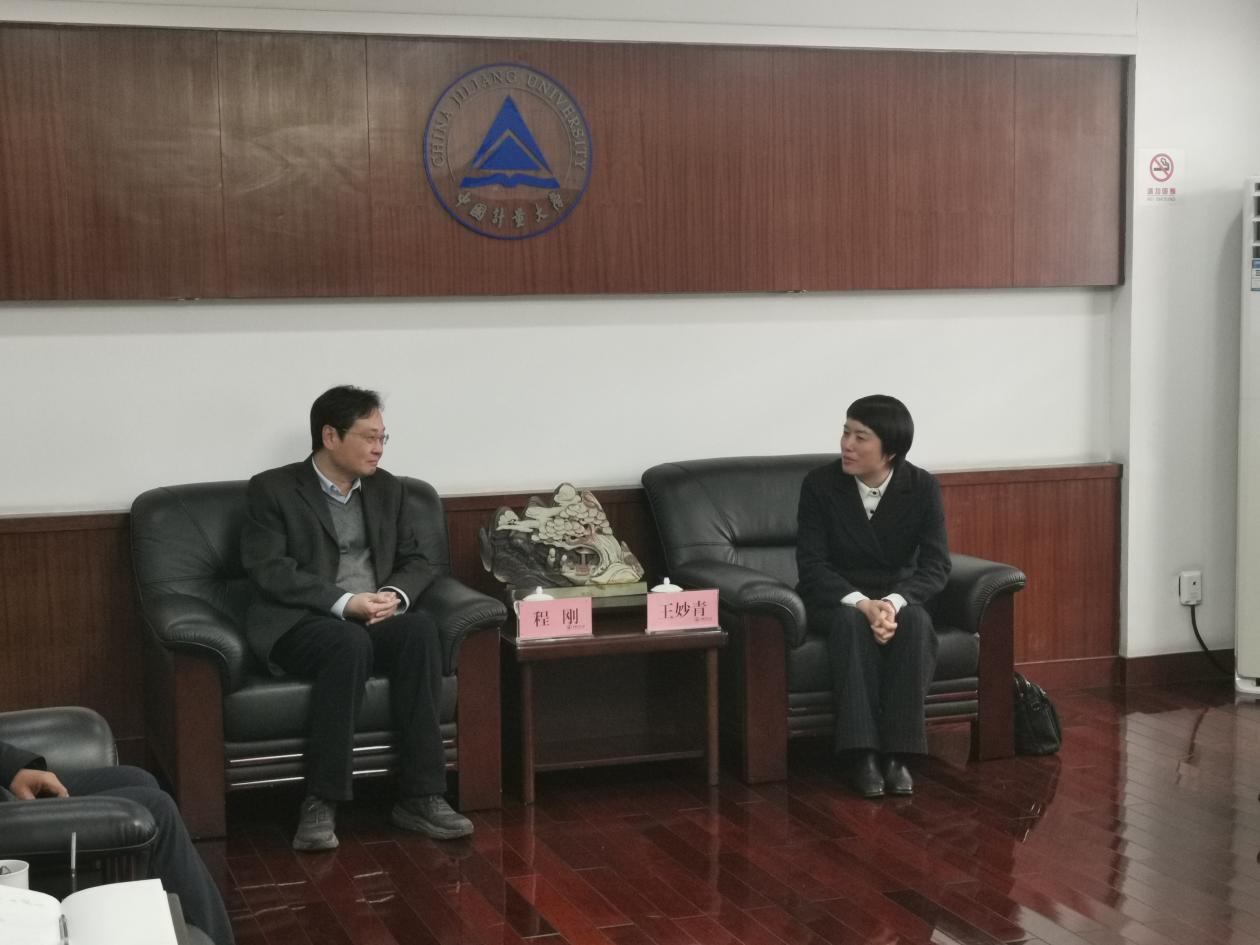 王妙青首先拜访了校党委副书记程刚,并对中国计量大学多年来在武义开展校地合作表示感谢。她表示武义教育需要更多优势资源的注入和帮扶,希望可以更加深入地挖掘中国计量大学国学院的共建工作,更好地发挥国学院的优势科研、教学力量。