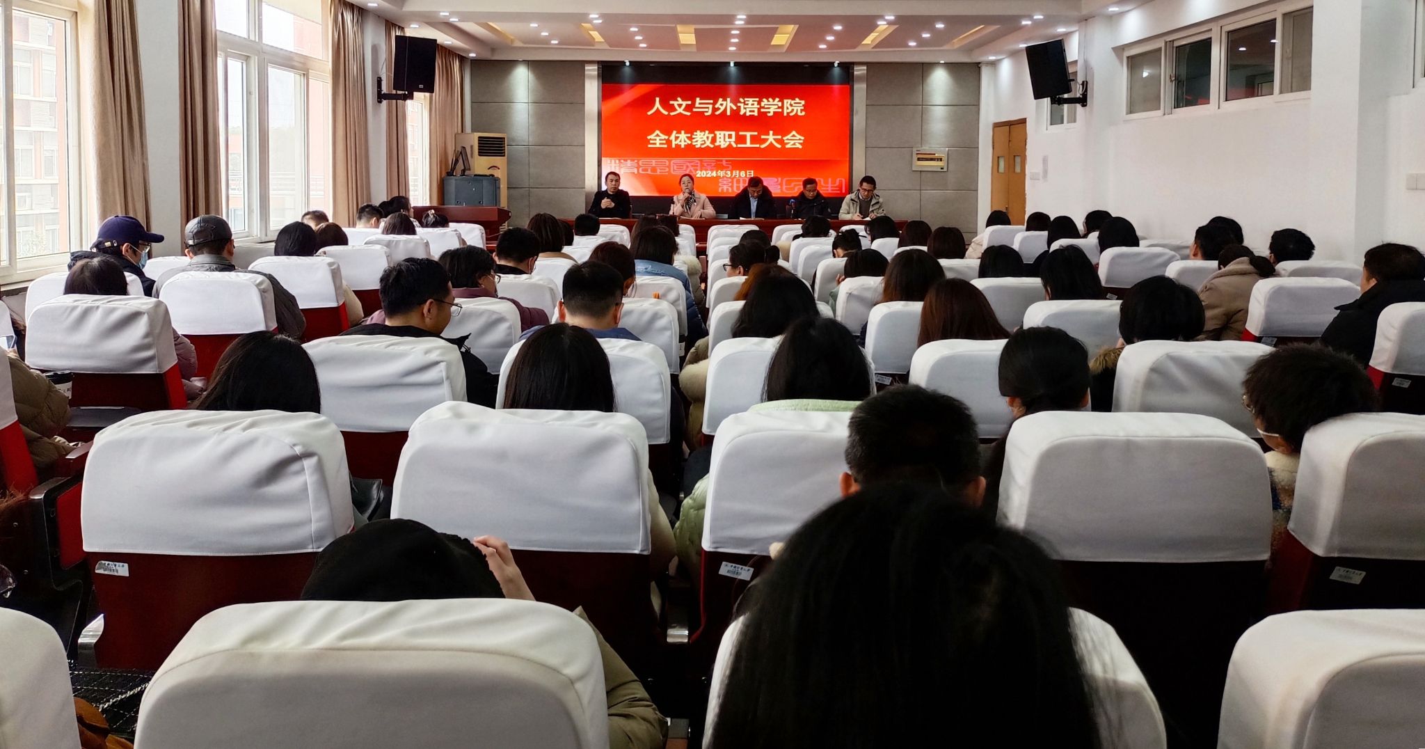 为做好新学期学院工作部署,人文与外语学院于3月6日在格中307召开全体教职工大会。学院领导班子及全体教职工参会,会议由党委书记赵蓓茁主持。