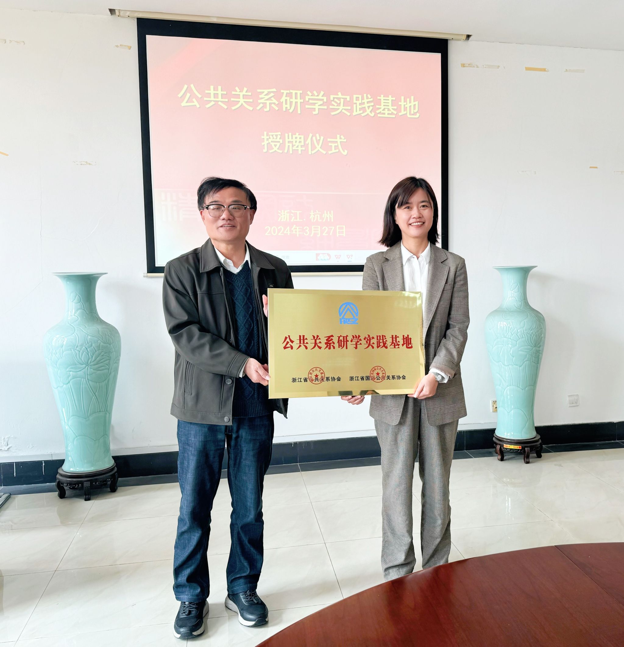 会议结束,双方达成合作意向,签订《中国计量大学实习基地协议书》,并对公共关系研学基地授牌,为今后开展多方位合作交流奠定坚实基础。