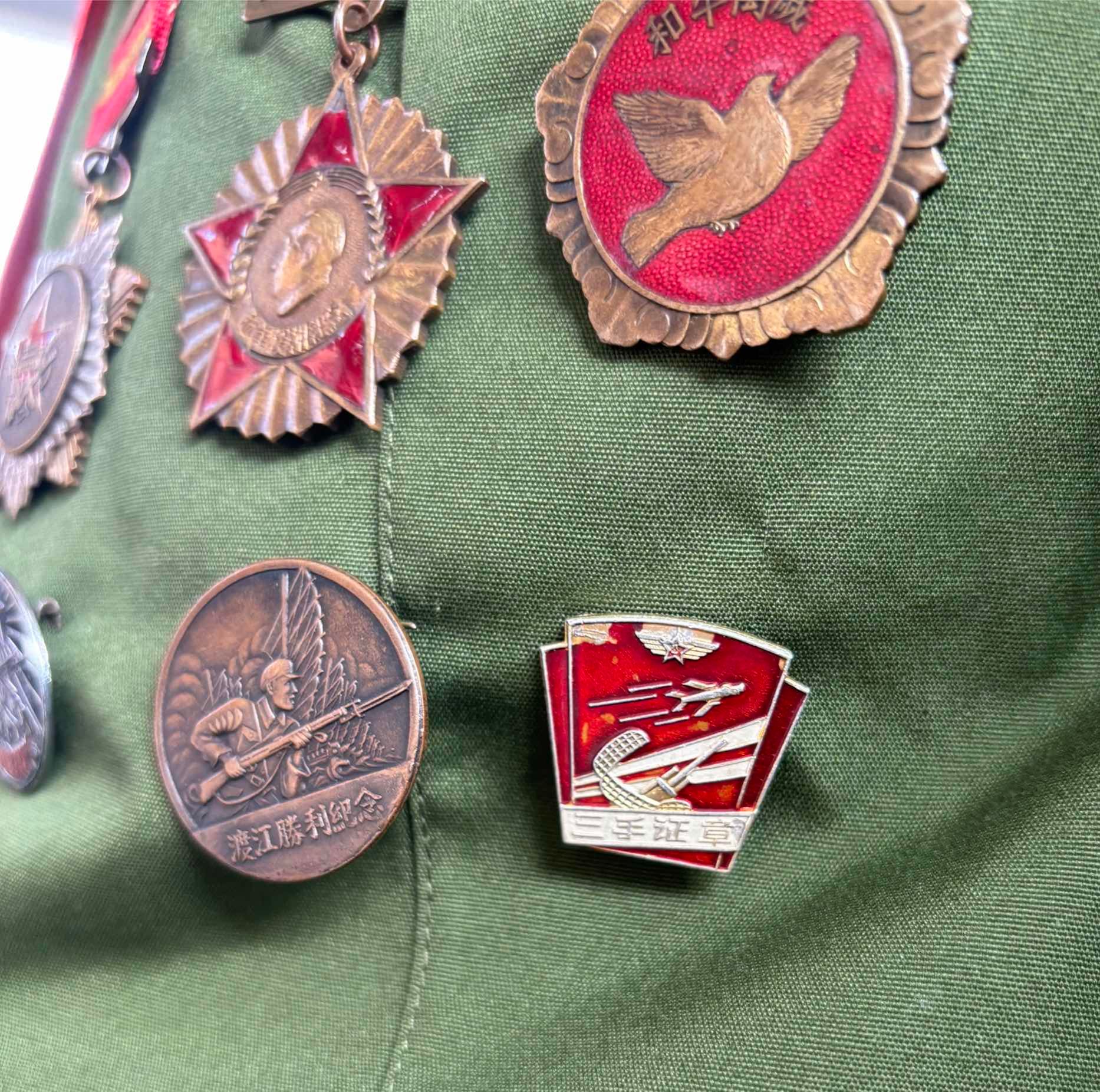 党史讲解后,郝老和多民族学生进行了友好的交流。阿卜杜拉同学问郝老,佩戴的那么多胸章里,郝老最喜欢的是哪一块。郝爷爷说自己最得意的是这枚“三手奖章”,颁给新中国第一批空军中优秀的“驾驶能手”,“射击能手”,“轰炸能手”,因为自己在航校的训练中,驾驶技能、射击技能、轰炸技能都是第一名。
