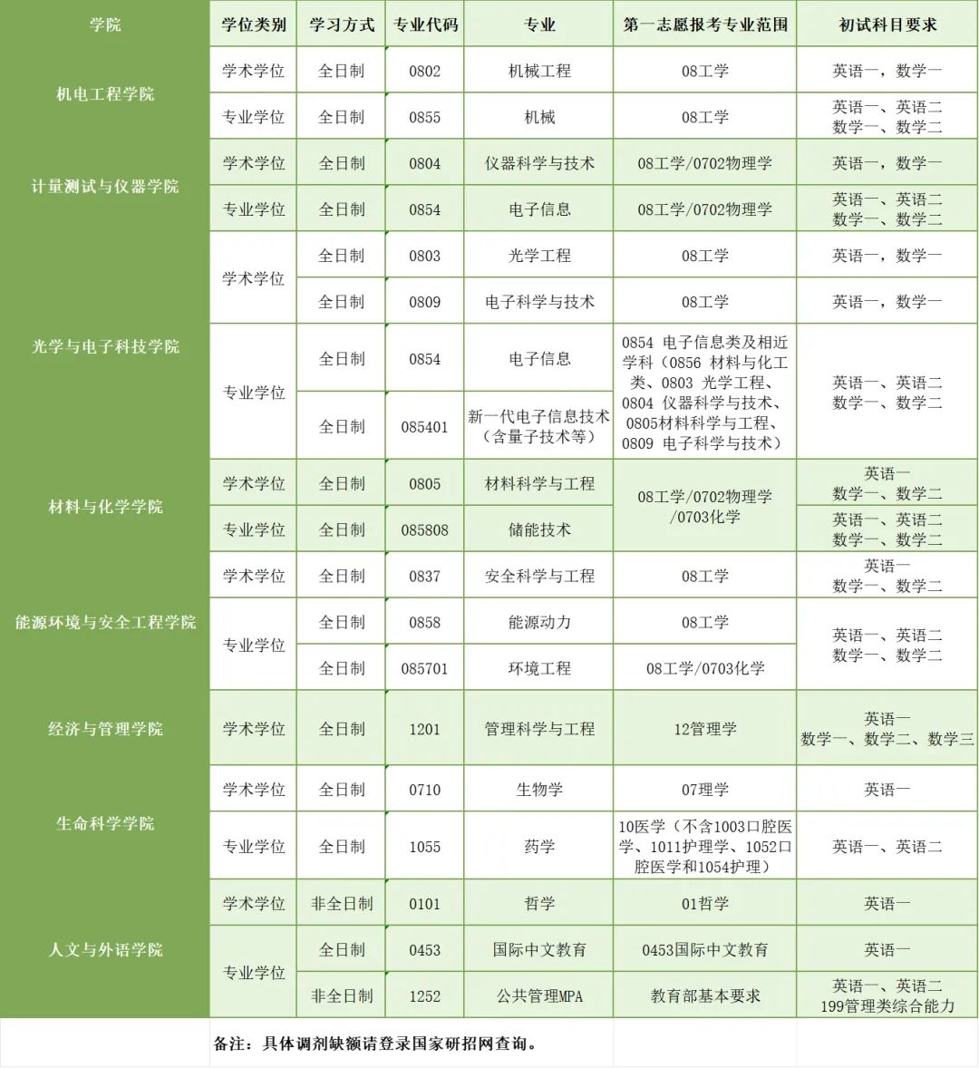 欢迎调剂中国计量大学攻读硕士研究生!根据《中国计量大学2024年硕士研究生招生考试复试基本分数线》和一志愿复试拟录取情况,我校部分专业接收调剂。现将调剂专业、调剂程序等信息公告如下: